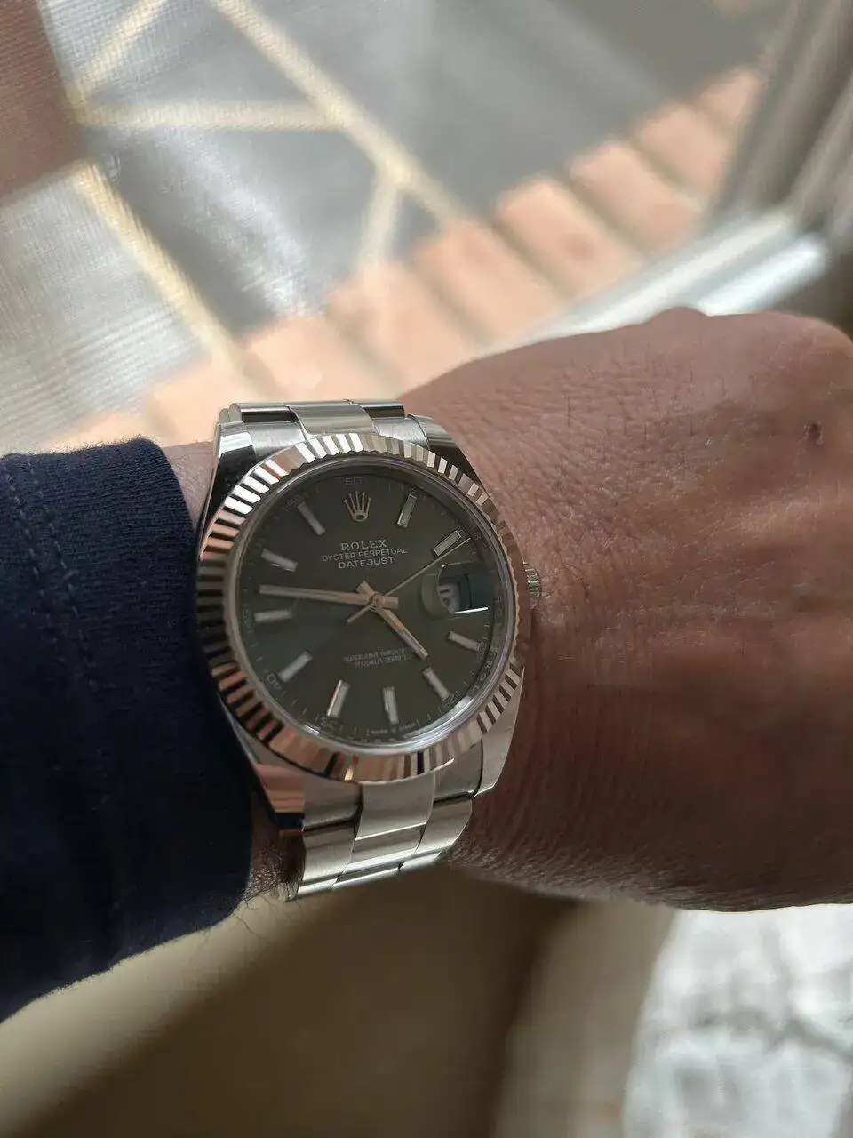 Bisel más fino, mejor proporción de esfers, corona mayor diámetro, anti reflejos y esfera negra lacada que le quita el gris mate aquel o el brillo blanquecino del cristal. Estr además parece que sobresale menos, y mi sensación seguramente subjetiva, es de más bajo el reloj. La corona es mayor que la de un OP41.