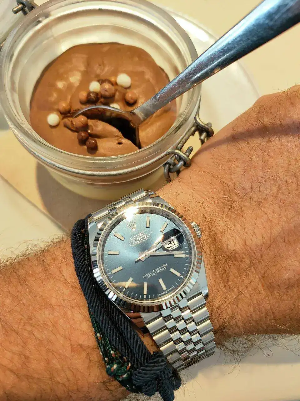 A mí la altura de la caja, igual, pero al final me lancé y enamorado me tiene. Buena pareja de atacantes tengo con el burdeos y el bluesy 🤩Es brutal. Me echó para atrás hace un tiempo la altura de la caja pero es un reloj precioso. Ese cristal, esos índices vintage, que lo disfrutes. Este con el bluesy vaya pareja! Viva el color!