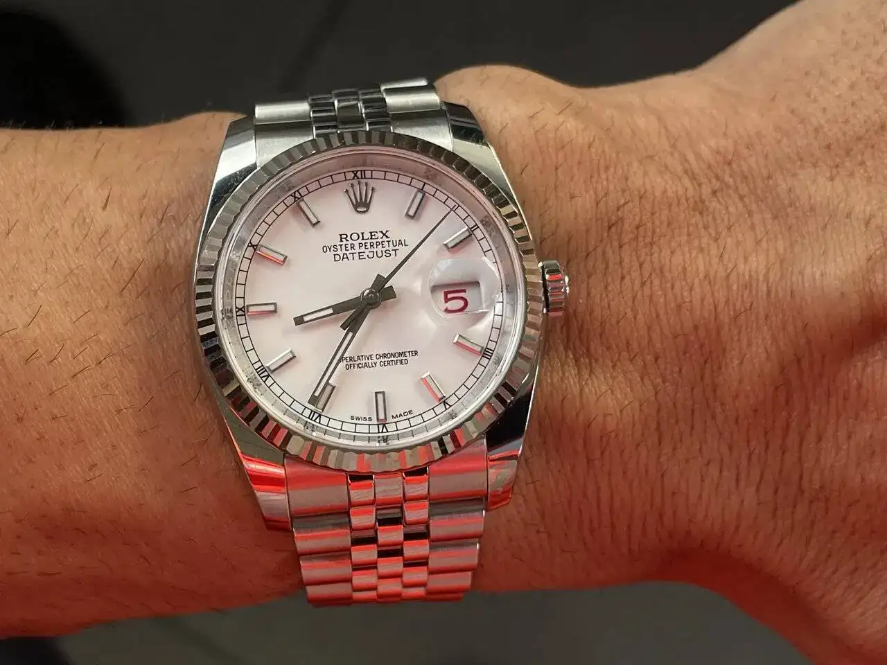 Gracias Noni, el Dj para mi tb es con bisel estriado y jubilee , y estas antiguas referencias con los números impares en rojo tienen su encanto, ademas del cierre oculto del jubilee tb lo hace mas especial.Que bonito... con los números rojo y negro del dia. El DJ para mi es con jubilee y bisel estriado.