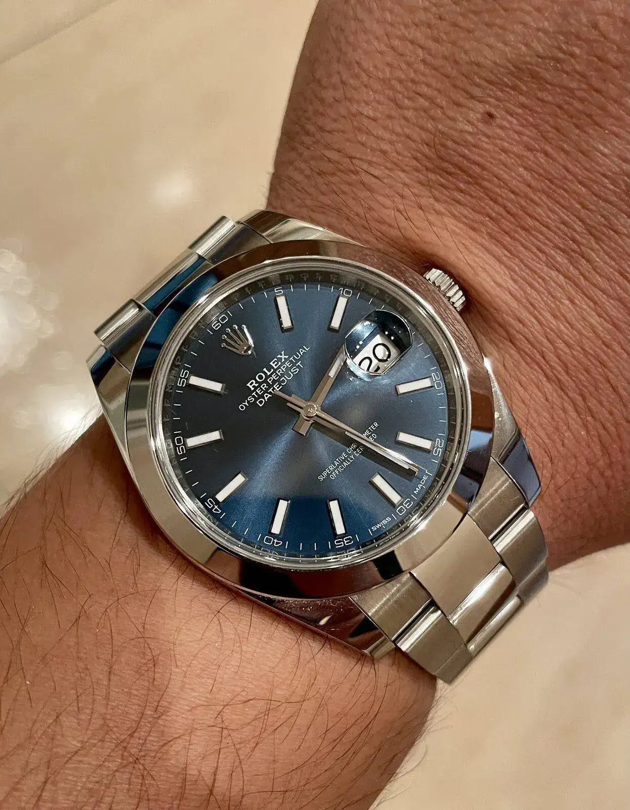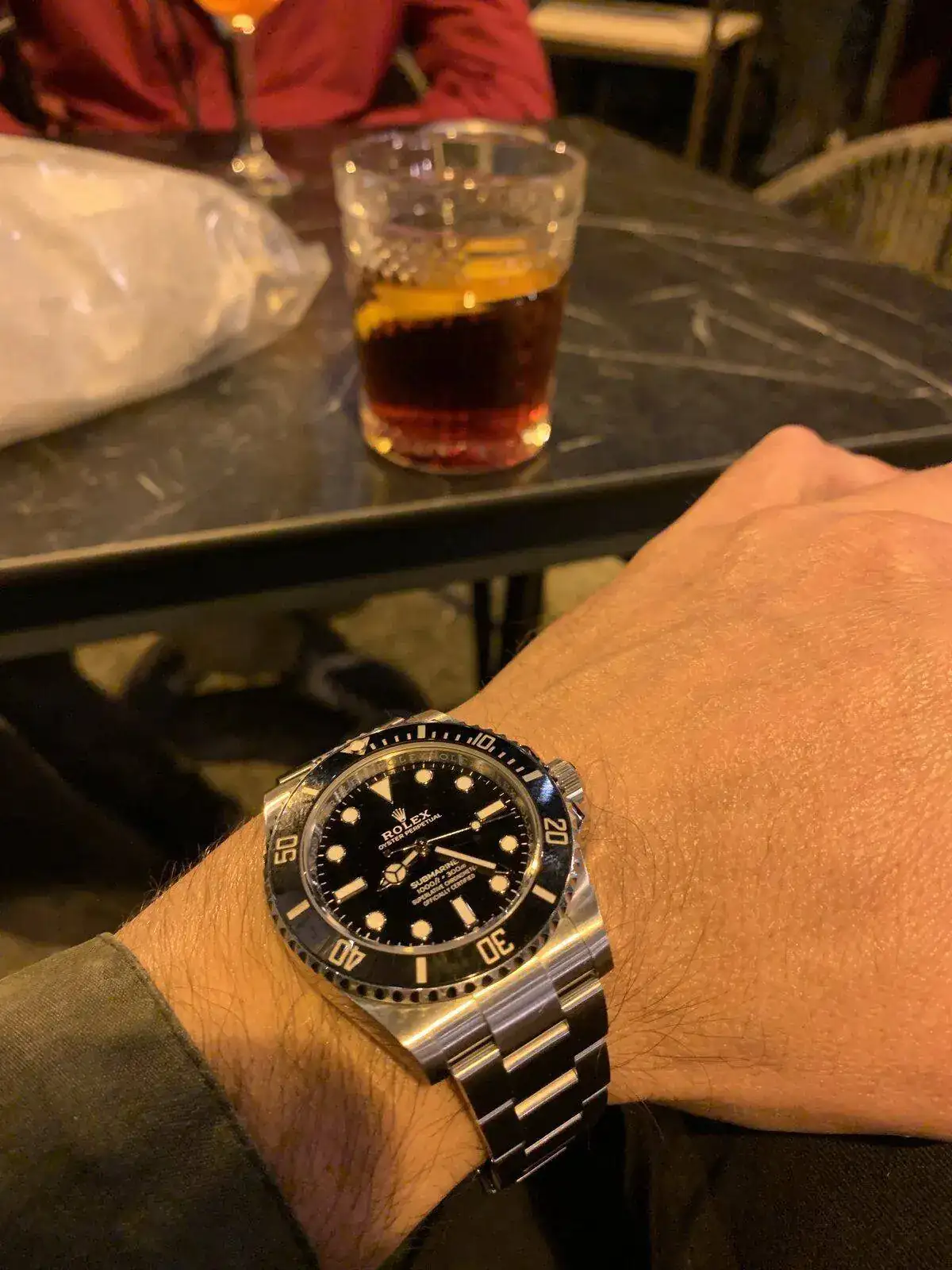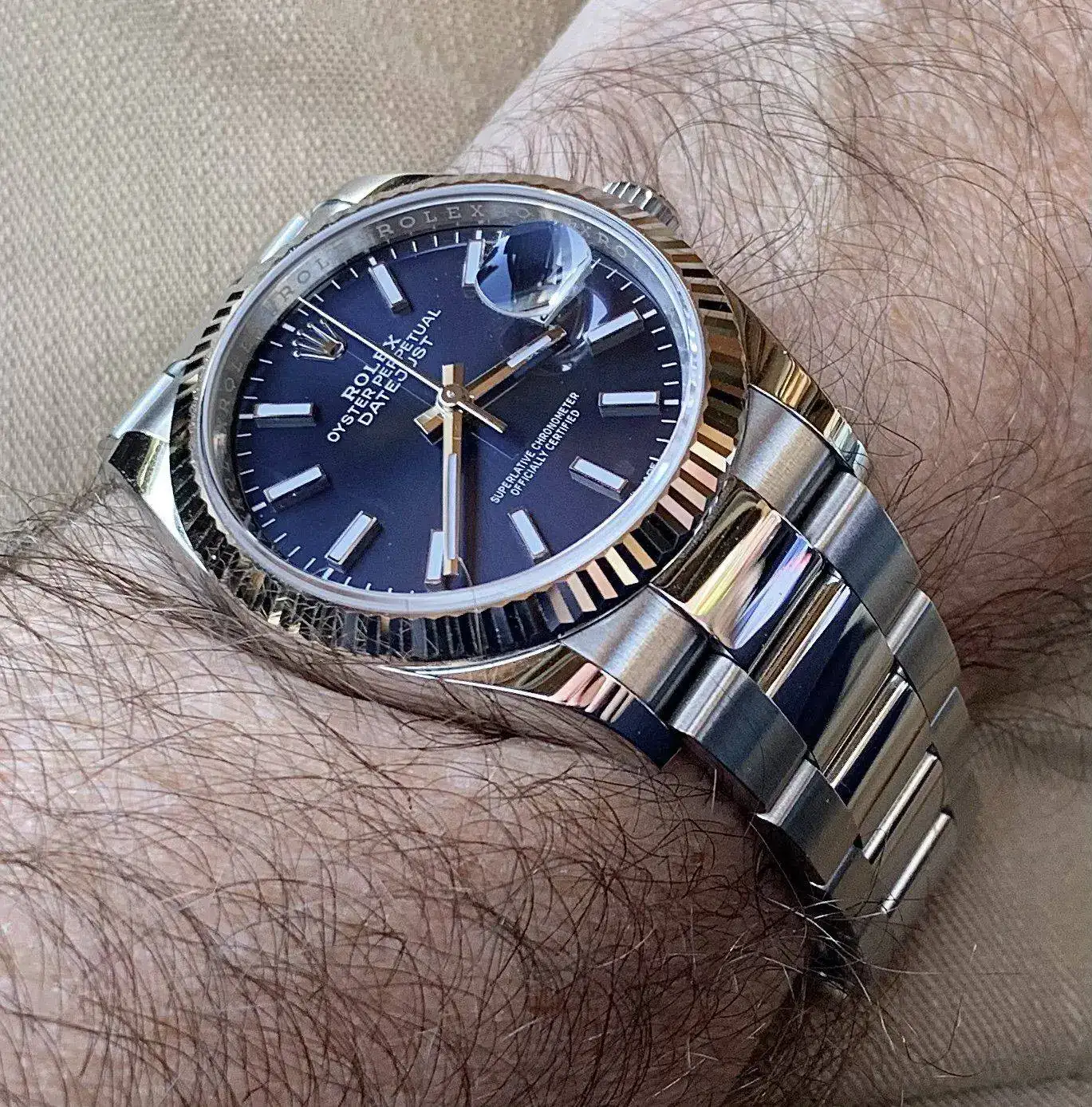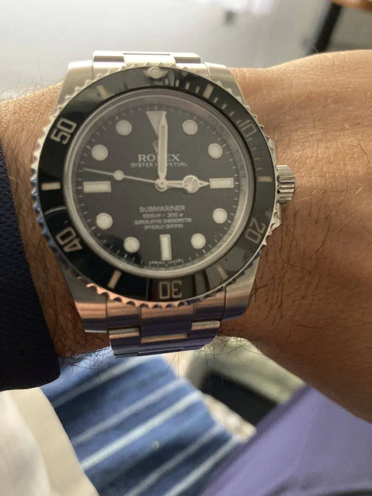 Ayer un amigo vino a cenar con ese modelo pero en negro mixto y me lo pude probar, era un 36, para mi muñeca se veía algo pequeño, el nivel de acabados espectacular, me enamoré, creo que voy a cambiar mi objetivo del sub al dj en 41No me lo quito !!!