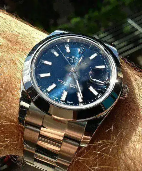 mi rolex que adoro pese a que lo odian la mayoría de foreros. Yo le soy fiel y le seguiré siendo. Es el 116613 LB, mixto, azul la esfera y bisel, me encanta que lo hayan discontinuado, para que hayan pocos en la calle. Mando un par de fotos para los que lo quieran ver.