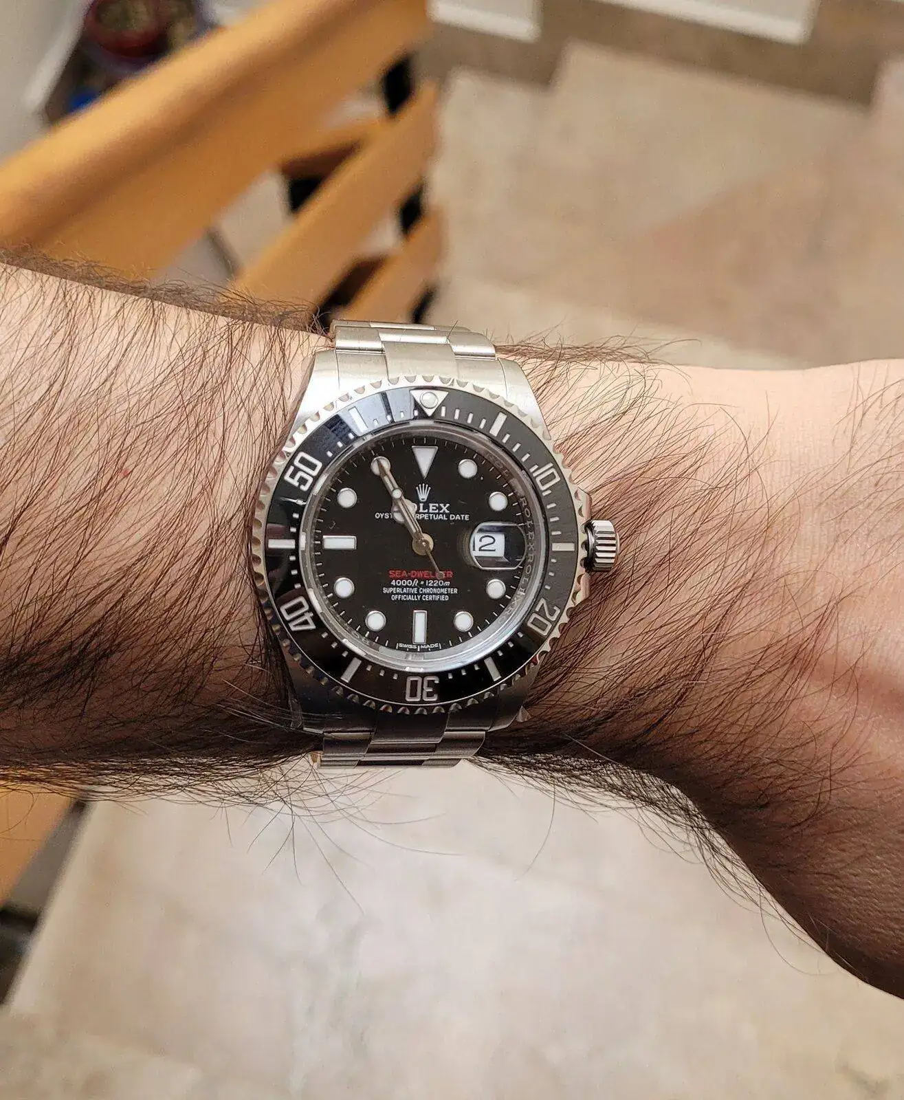 Además es el seadweller de los nuevos más coleccionables, el auténtico 50 aniversarioTotalmente, en cuanto empiece a ponérmelo le quitaré las pegatinas. Por ahora sólo sale de la caja fuerte para una sesión de fotos y vuelta.