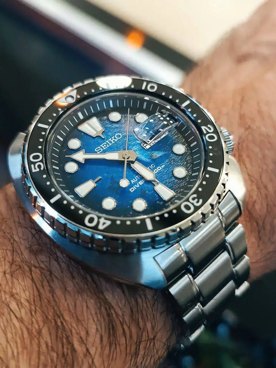 Además tiene la particularidad que dichos contadores hacen un barrido continuo y no ha saltos como es el caso de la contadora de minutos de los 6138/6139.precioso Seiko “Monaco”. Es muy interesante la complicación del cronógrafo con indicadores sólo en una esfera.