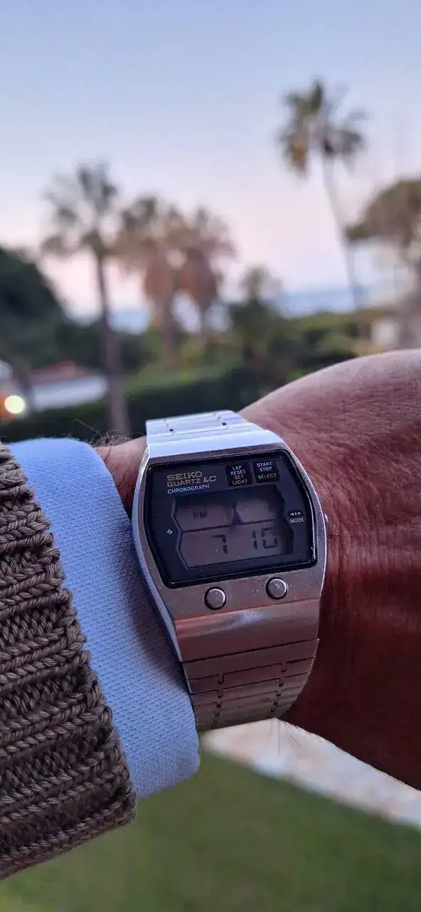 Este lo usé durante muchos años, heredado de mi padre. Debe andar por un cajón, dejó de funcionar hace unos cuantos lustros.Seiko 0634 el primer cronografo digital de la historia. De 1.976