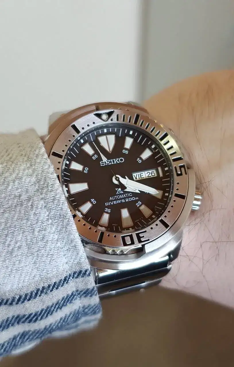 Baby Tuna. Lo pillé por aquí de segunda zarpa y estoy encantado con el troncho este. No sé qué tienen los biseles de acero en los divers, pero se me van los ojos a ellos.