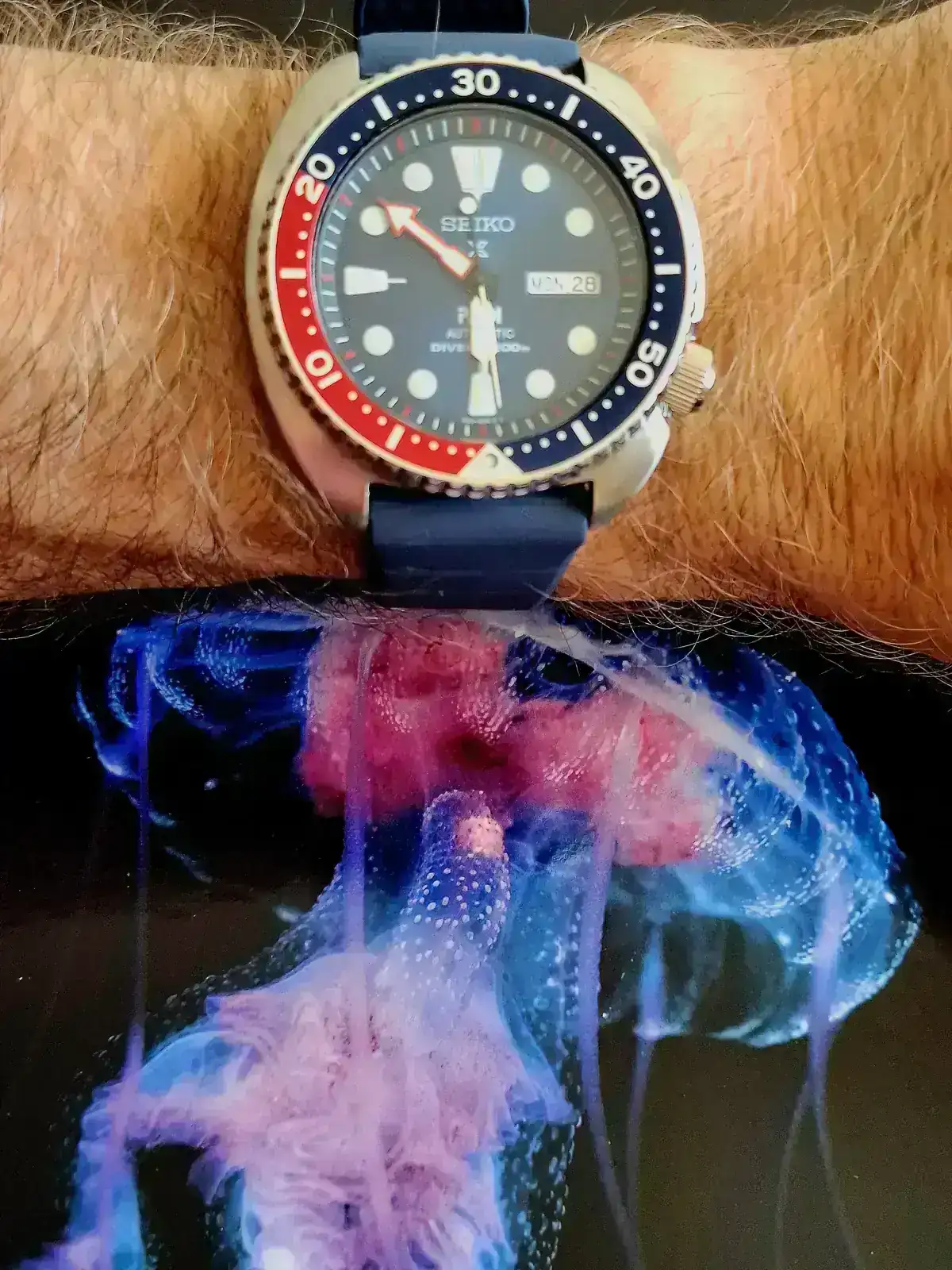 Estrenando brazalete para el tortuga.