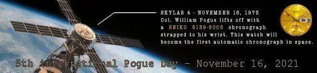 Yo pongo en su honor este otro.Hoy se cumple el 48º aniversario del lanzamiento al espacio de la nave Skylab 4, en su interior el astronauta William R. Pogue llevaba en la muñeca un Seiko 6139-6005 con el dial amarillo, convirtiéndose así en el primer cronógrafo automático en el espacio. Desde hace 5 años en este día se celebra el Día Internacional Pogue.