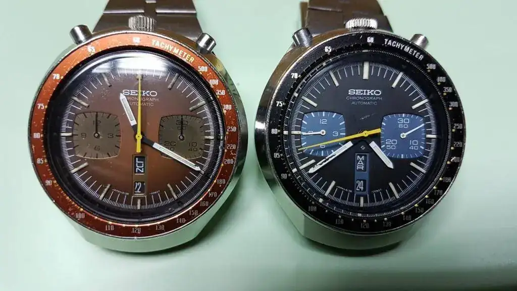 Loe míos son del marzo de 76 , los armís por dentro no llevan las marcas, pero el negro di lleva la inscripcion en gris.El "chronograph automatic" del dial en las primeras versiones es de color gris, en las siguientes versiones pasa a blanco. En el dial marrón no hay diferencias.