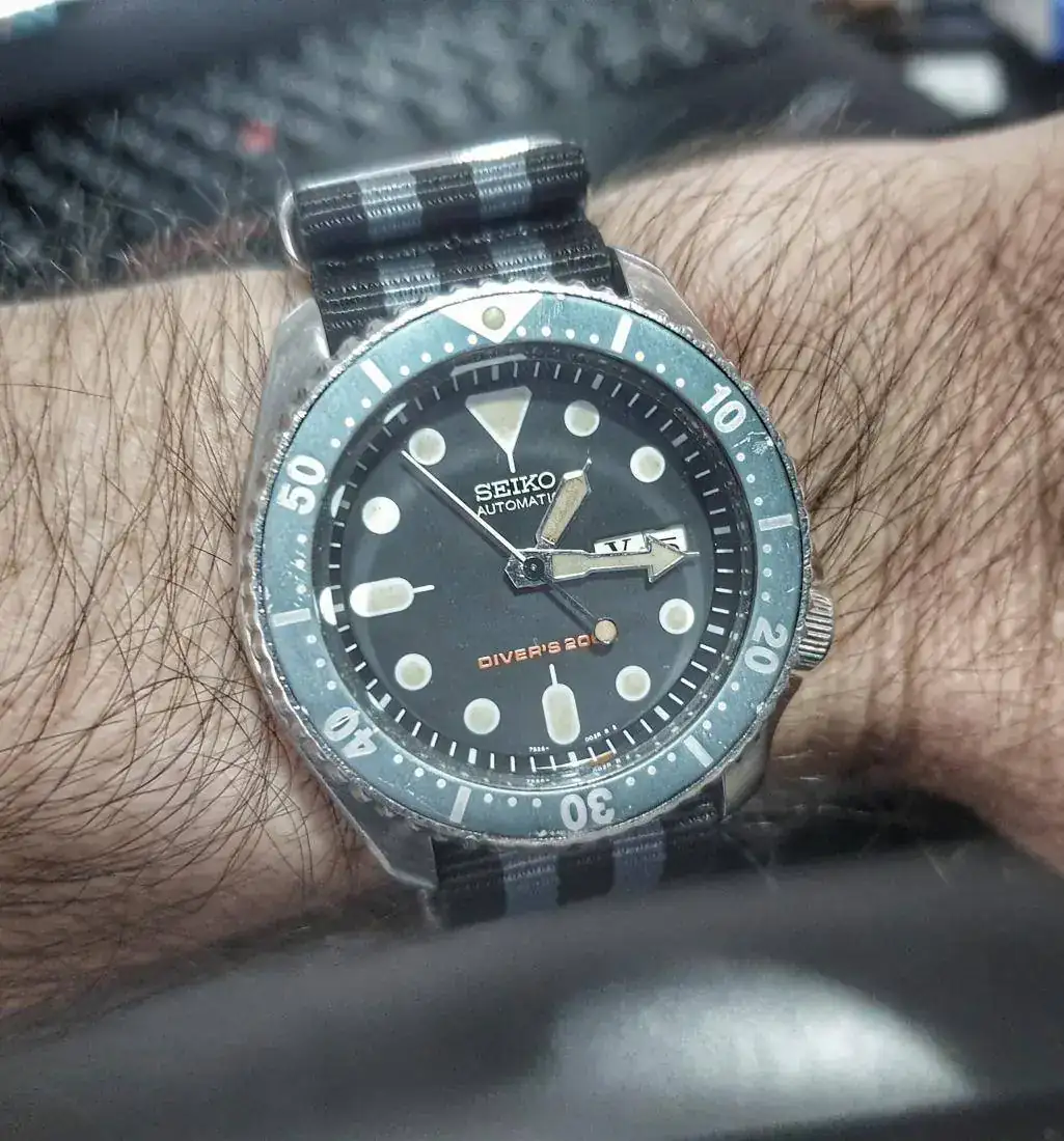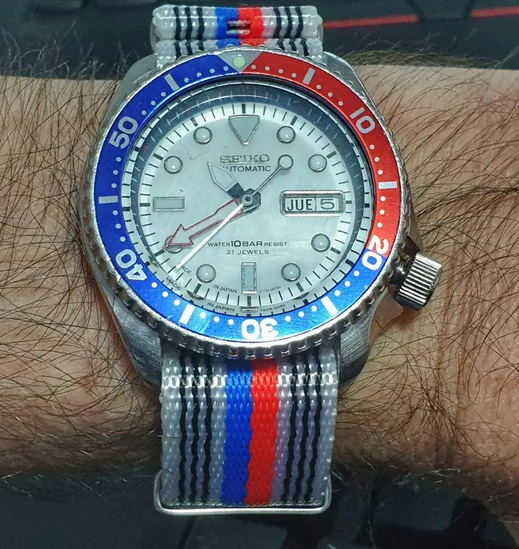 Martes 2 de Seiko 5 movimiento 6309 de 1978,estrenando correa de piel de foca.
