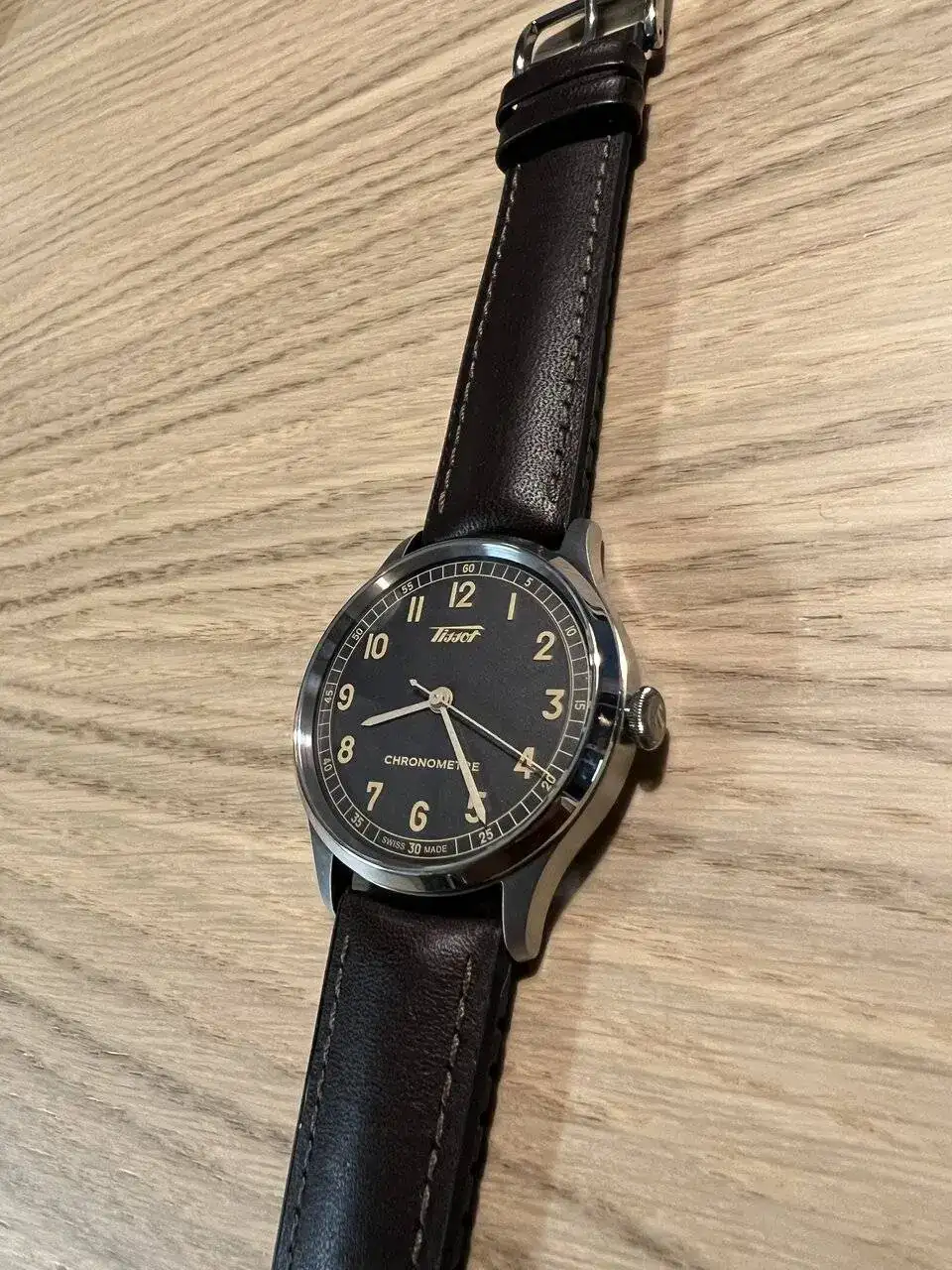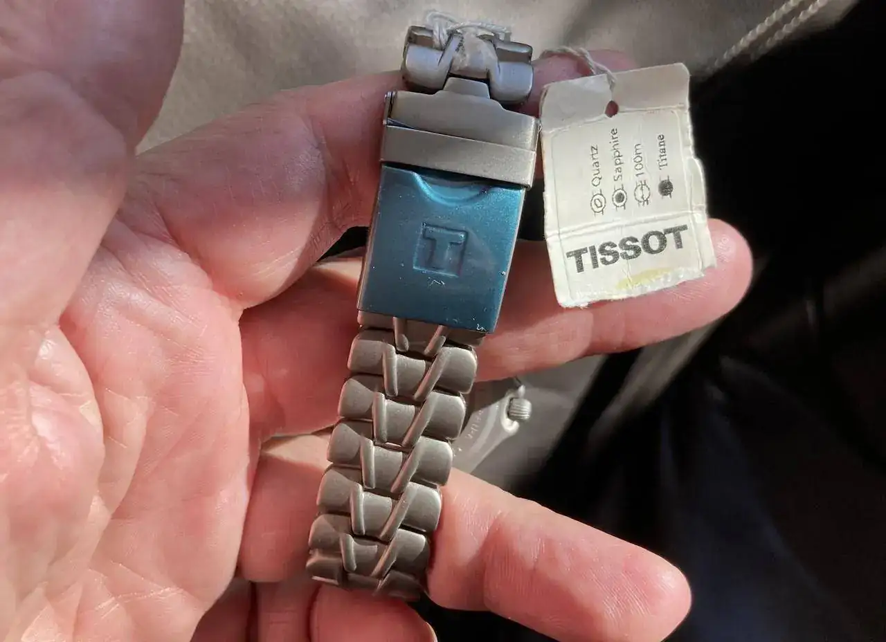 Aprovecho para liarla un poco y mostraros la última incorporación. Desconozco la denominación, y es una excepción en mi caja, que sólo alberga Tissots *sin* el año 1853 (la señal de corte y de la incorporación al Swatch Grup).