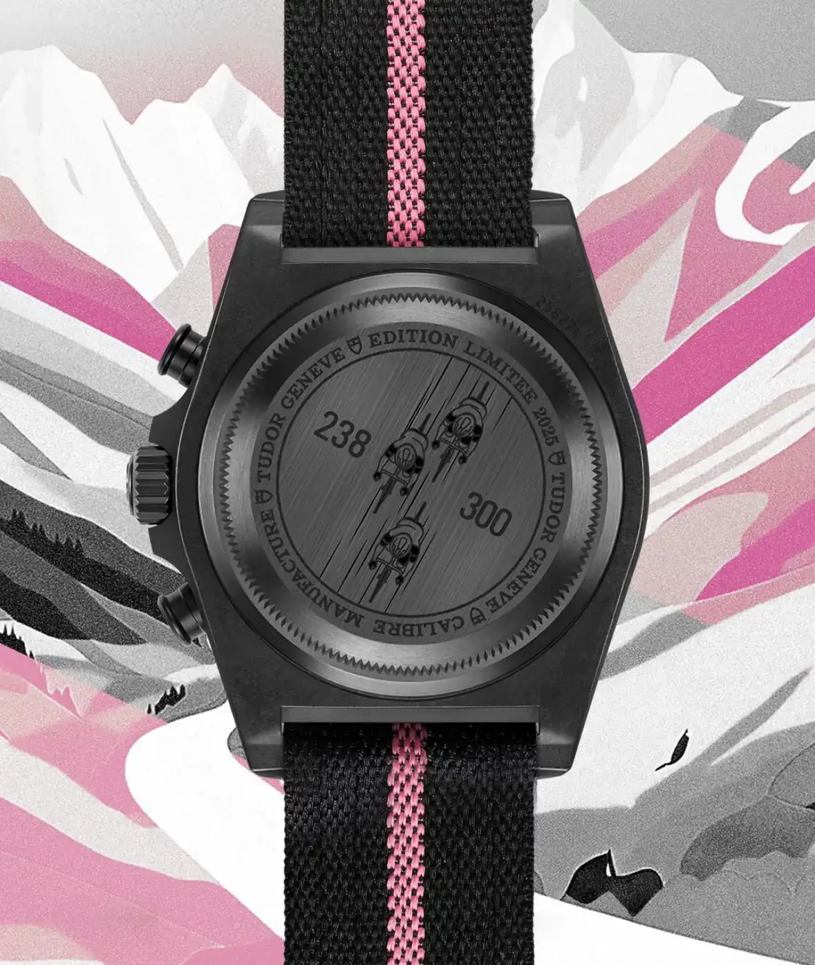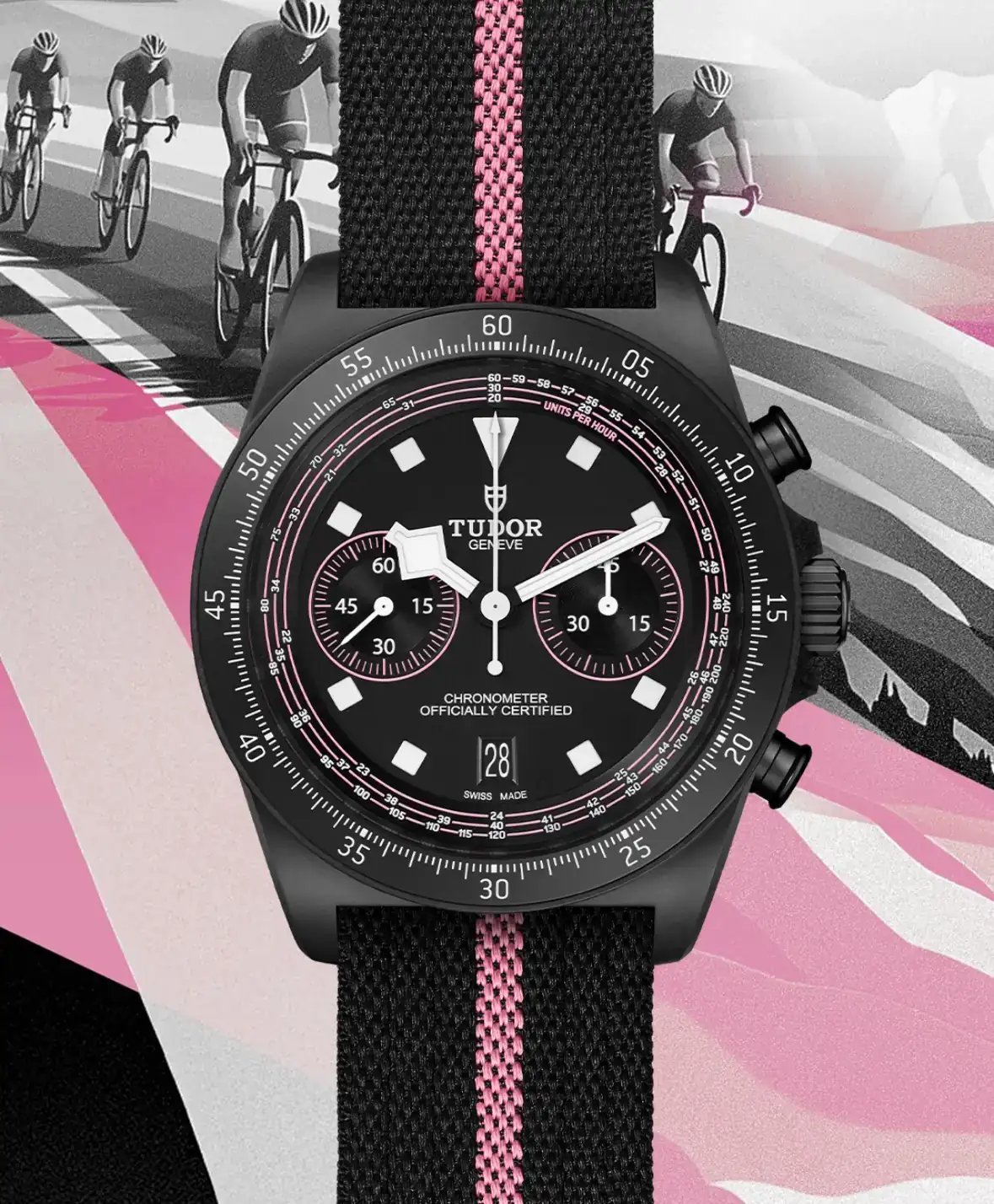 Pues otra “semi” novedad de Tudor, que bajo mi punto de vista poco aporta, pero que tampoco hace mal para el que quiera tener otros colores. Edición limitada a 300 piezas del Chrono FXD con detalles rosas en relación al Giro de Italia.