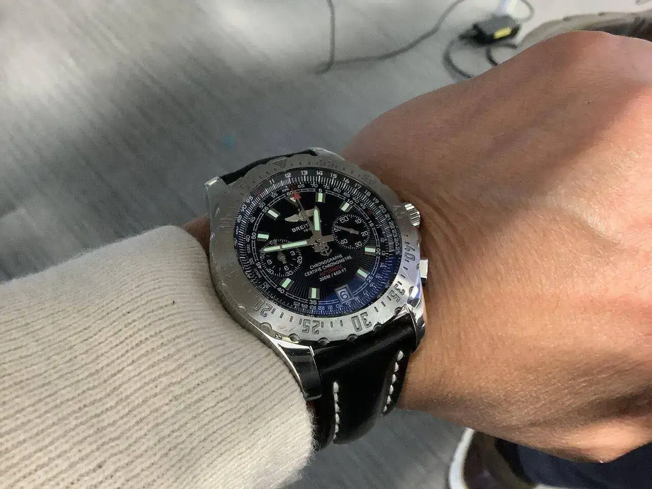 Ya he debido sacarlo aquí alguna vez. Pero, es el que llevo hoy. Estoy "in love" con este reloj, con su esfera (color 'ardoise', a medio camino entre gris y azul), su caja (fuerte, bien construida, ya no se hacen Breitlings así) y su brazalete.