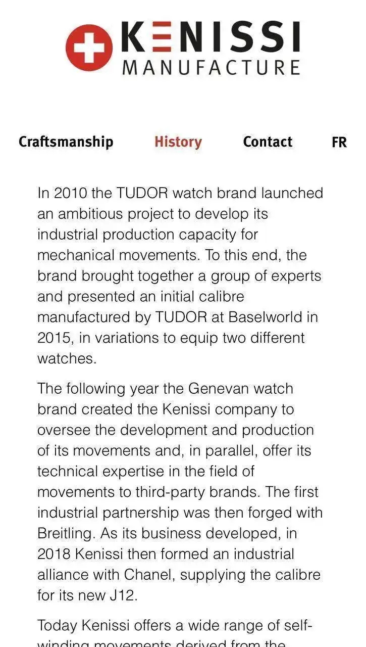 El calibre considerado como manufactura por Tudor, lo fabrica externamente Kenissi, pero también hay que tener en cuenta que Kenissi está muy ligada a Tudor, aunque no en exclusiva.