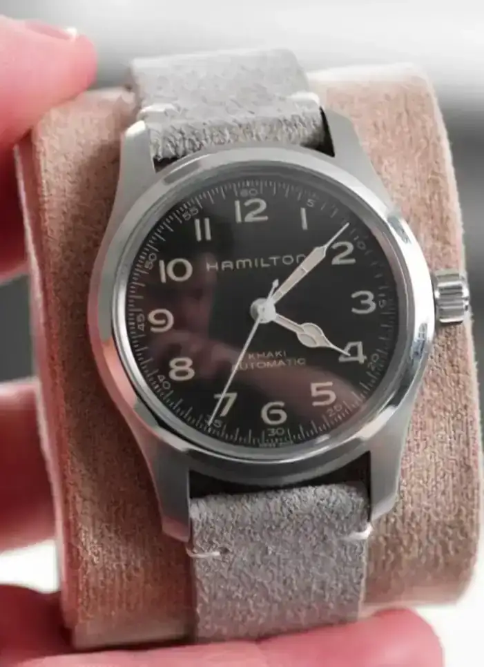 Hola! Hace un par de semanas por fin me hice con mi Hamilton Murphy de 38 mm con el que no puedo estar más contento, y lo adquirí con el brazalete metálico, cosa de la cual no me arrepiento. El caso es que estaba barajando alternar con una correa de piel (la original del reloj no me termina de gustar), y pese a que lo tenía más o menos decidido, me ha surgido alguna alternativa interesante, y no sé por cuál decantarme. El caso que las opciones finales serían