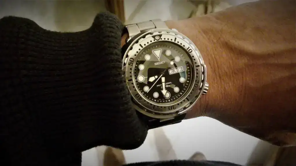 Muy plano a mi parecer, estamos acostumbrados a ver "tochos" o "supertochos" en los divers, pero este al ser tan bajo le da un toque de prolongación del armis, lo que lo hace para mí muy elegante...