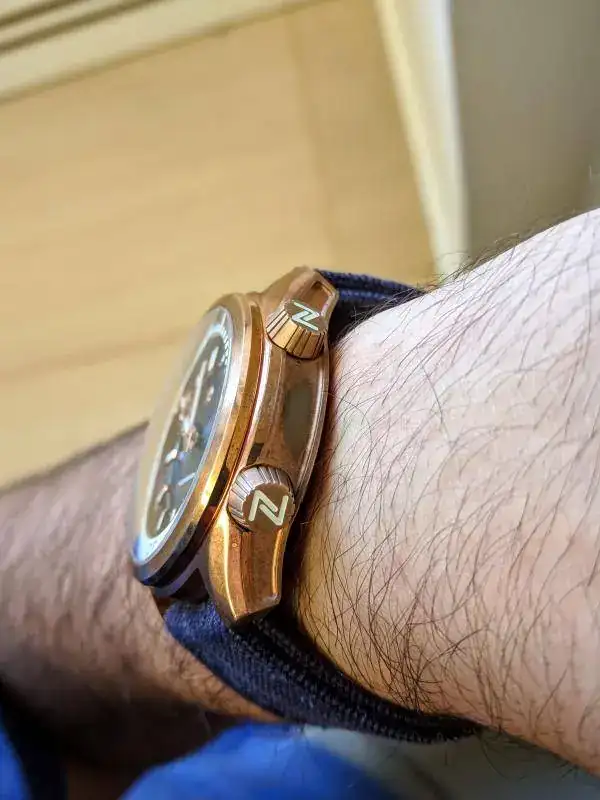 Que pasada macho, vaya tela, es un reloj superdeportivo y cañero pero superelegante, y encima bien terminado y rematado, Zelos cuida hasta el ultimo detalle. Tienen que mejorar en alguna cosa como las terminaciones de la caja con bordes cortantes, (ya lo mencionaba Ariel Adams) e incluso los agujeros para los pasadores de las asas que no estan perfectamente alineados, pero bueno, el resultado es muy muy acertado, genial para mi gusto.