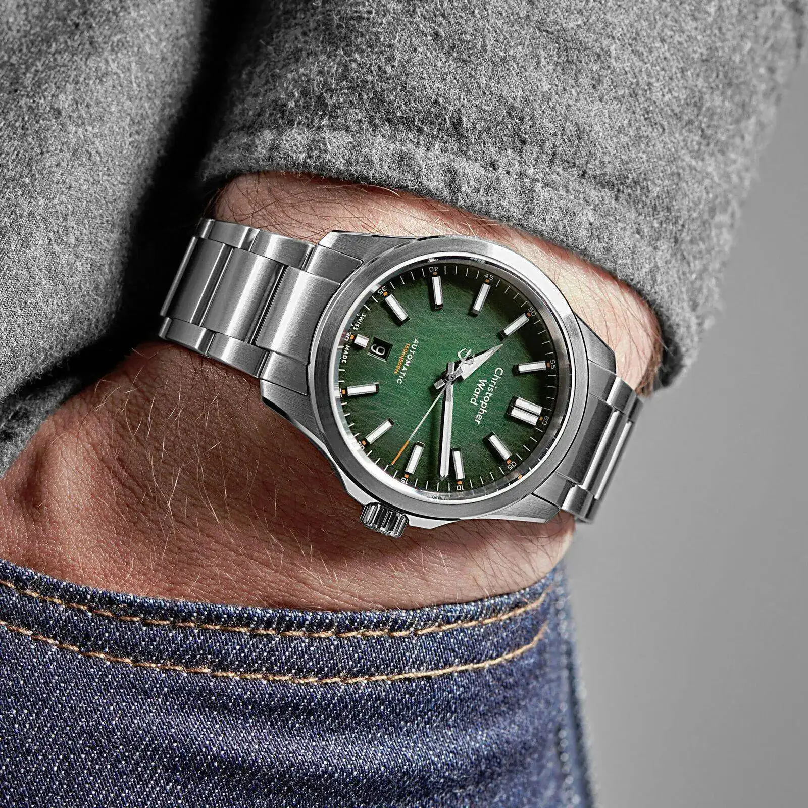 -La caja de acero, plateada, se puede jugar con colores en los índices y esfera.
