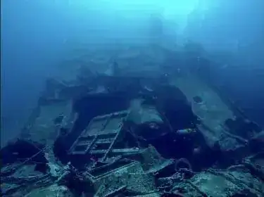 Aquí un barco cisterna que la armada francesa utilizó como blanco para que los buzos coloquen explosivos.