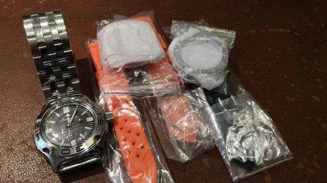 El bisel va a ir fuera, claro... tengo varios candidatos para el reemplazo! Y la correa... pues hay una de piel tipo rustico de WatchGecko que está esperando...