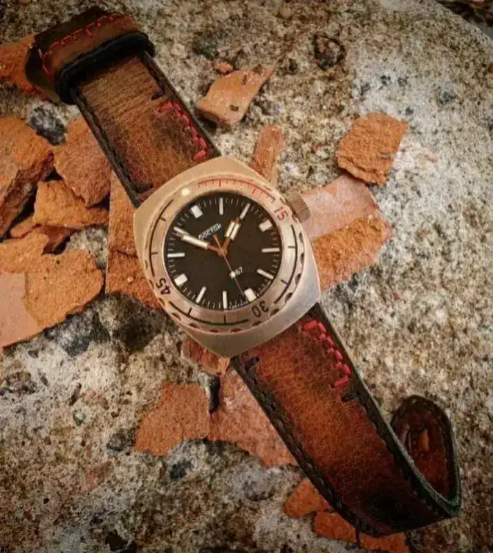 strap.webp Pedí una correa personalizada para mi 1967. Me gusta cómo las costuras coinciden con el bisel.