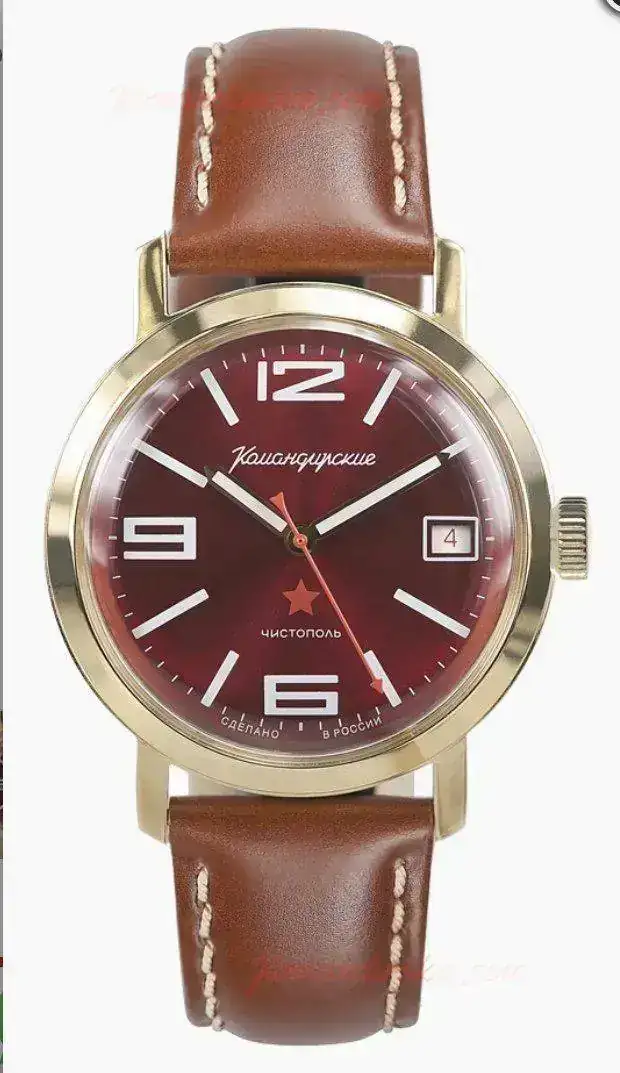 , me gustan los rojos (las esferas). Lo de ponerle una milanesa dorada...os estais poniendo todos de acuerdo?, vais a poner de moda los dorados cigaleros??A raíz del hilo del camarada Cestommek sobre el Komandirskie 1965 negro, me encontré con su hermano rojo en Komandirskie.com y me lo he pillado