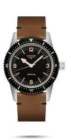 En la correa de cuero envejecido que él LONGINES la lleva de animal en riesgo de extinción....!no,!