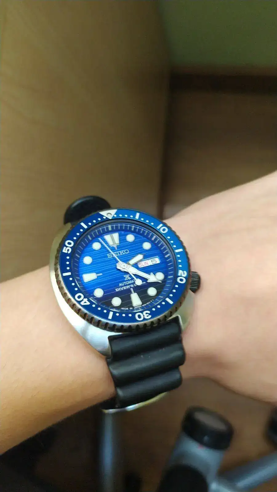 Y el Seiko tortuga, no es este modelo pero el tamaño el diseño etc, es el mismo. El más grande de los que me he probado. A este puedo llegar para agosto, que es cuando cumplo los 15.