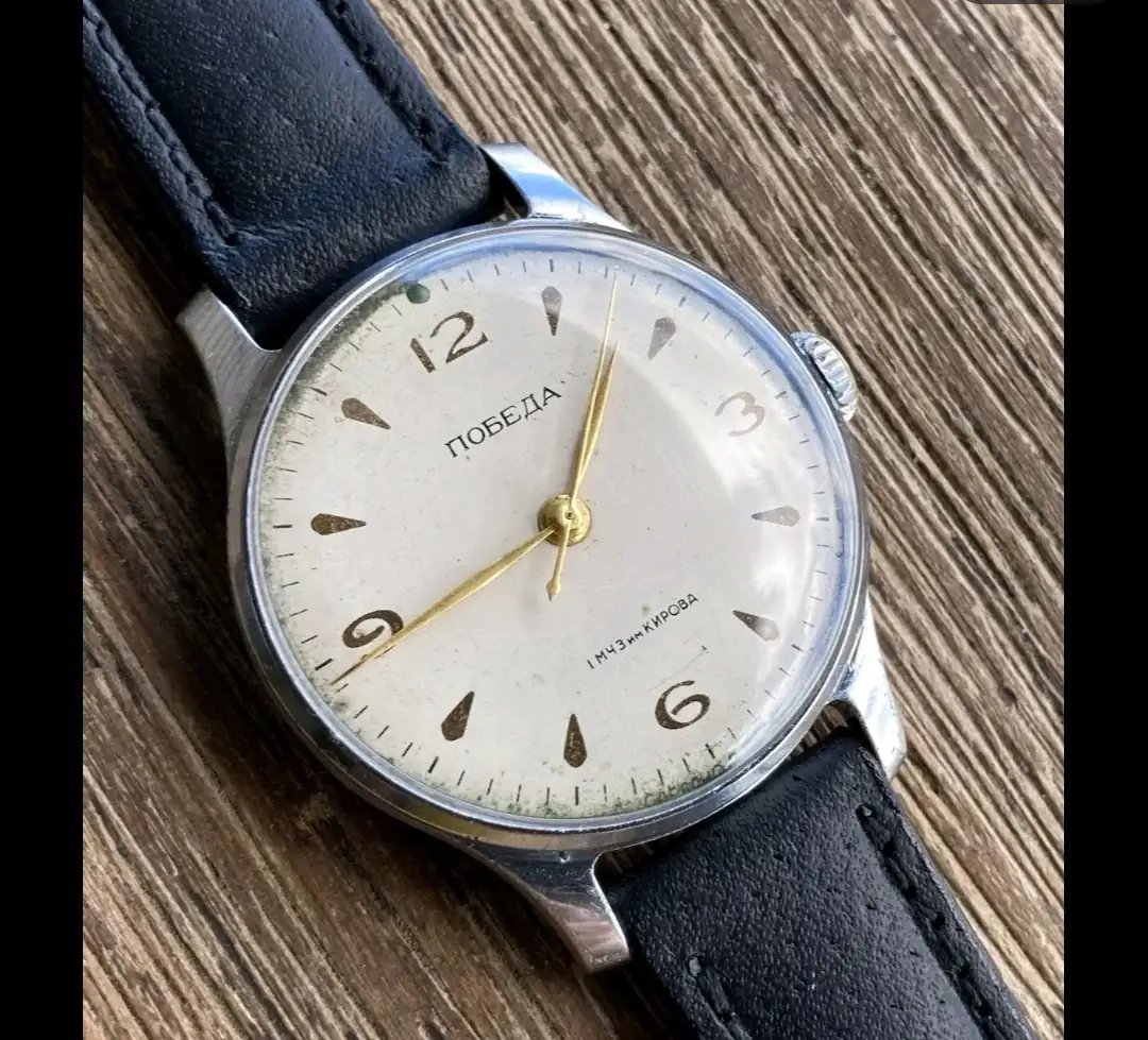 Buscando en el rastro infinito que es internet me encuentro con este reloj de aquí, fabrica de Kirov década de los 50. Os cuadra? Le veis algo feo? El movimiento lo veo especialmente bien para tener 70 años quitando que el ajuste de horas está tirando al extremo.