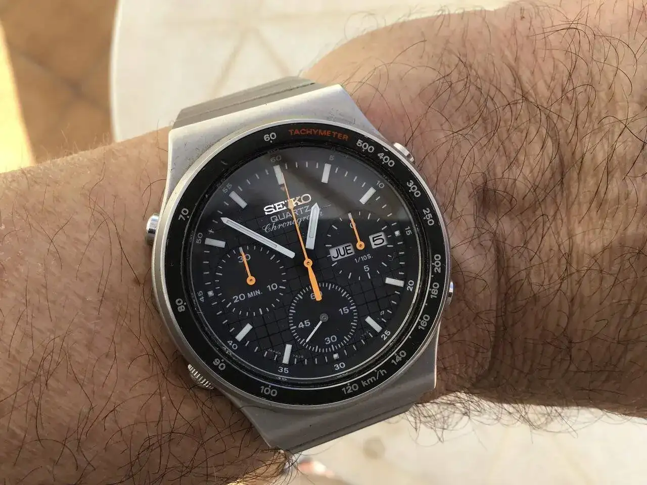 La verdad que sí, curiosa y bonita casualidad. Este lo ha usado casi a diario durante los 20 años que tiene el reloj y está en un estado impecable. Ahora me toca a mí darle caña y lucirlo.Qué casualidad compañero, el mismo que mi padre. Era su reloj favorito, siempre le encantó y mi madre se lo regaló al cumplir los 50 años. Lo usó casi a diario durante 20 años y ahora está en su caja fuerte, reposando.
