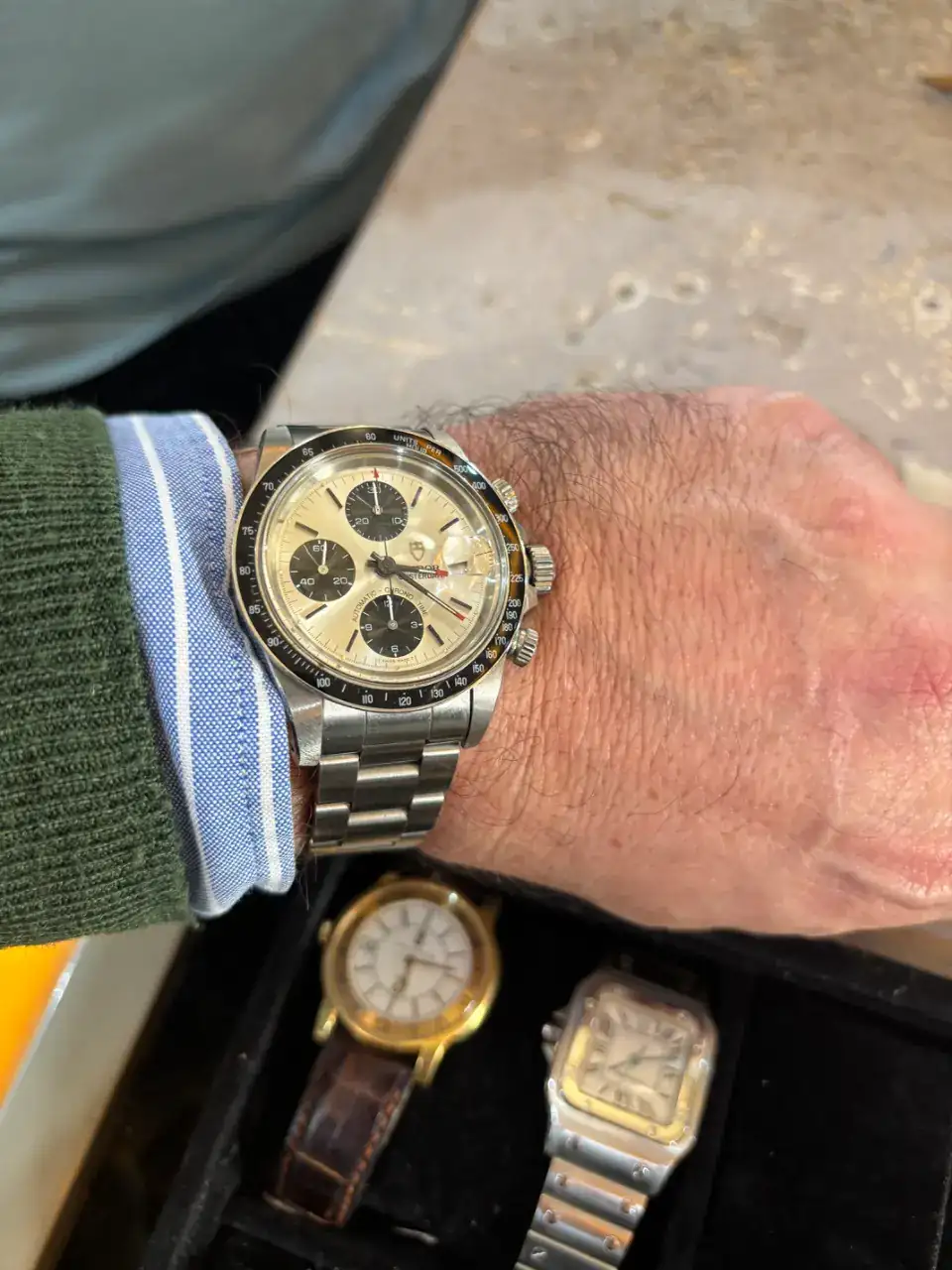 Algunos llaman a este modelo el ‘Daytona del hombre pobre’, pero ofrece una relación calidad-precio increíble. Es un reloj muy interesante para investigar, quizá incluso más raro que un Daytona, especialmente por la escasez de esta configuración en particular con dial estilo esmalte y diseño Panda.