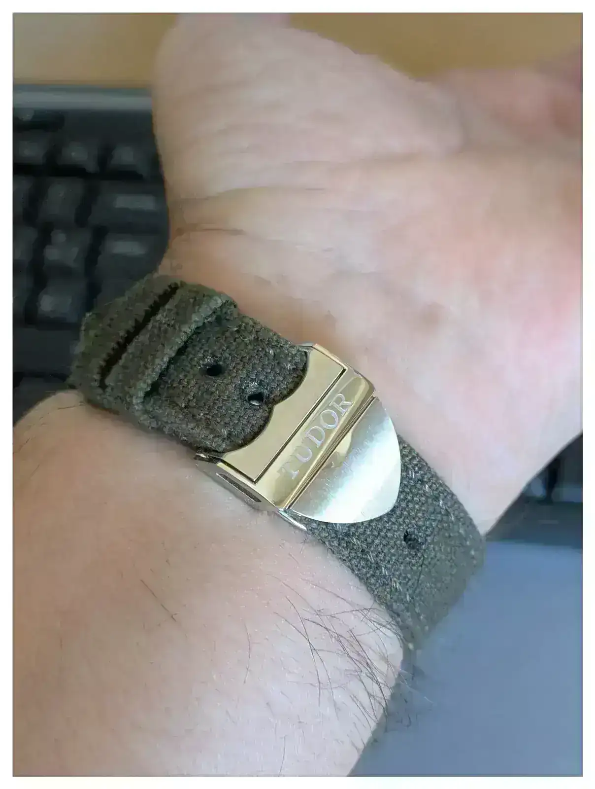 Ayer lo probé yo con la canvas que te comenté y, al probarla con un cierre de Tudor, la posición de los tramos de la correa queda tal y como tú has colocado la tuya.