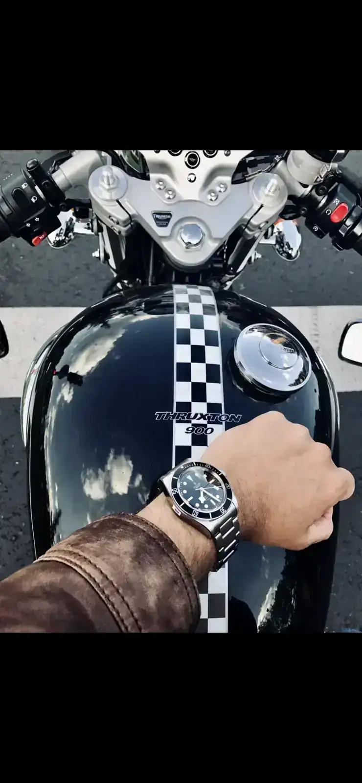 Muchas gracias! Es una thruxton 900 de carburación (una de mis motos favoritas de siempre y un orgasmo motero cada vez que la cojo). Te dejo esta foto de la moto completa.Que belleza de Triumph, que modelo es ? Preciosa foto 😍