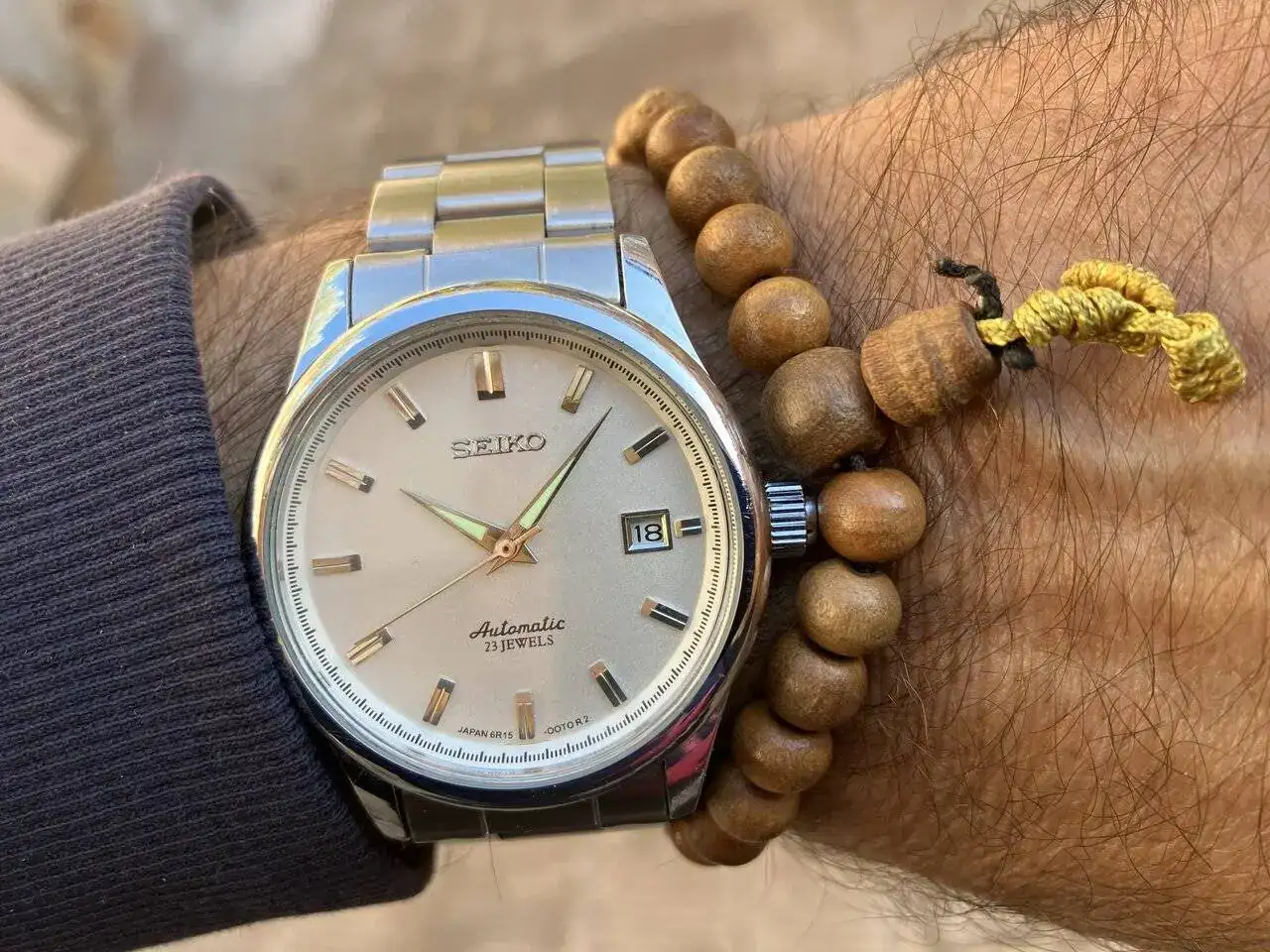 Curioso.Hoy este Seiko vinyage con un dial con una patina muy bonita ( la foto no es fiel reflejo) de color champán.