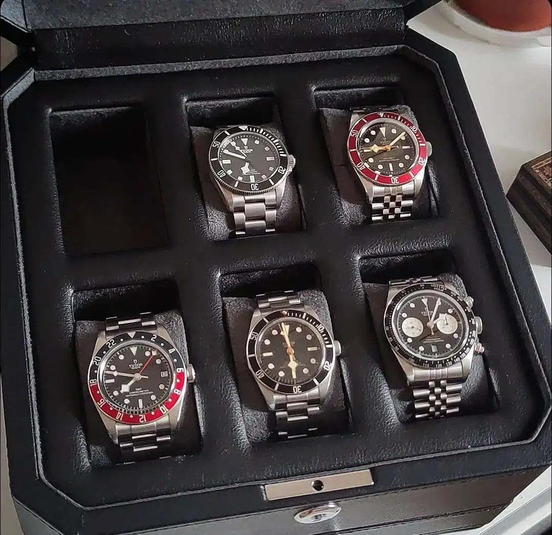 Pues la verdad que los dos casos que mencionas me gustan más en negro. La idea es meter uno azul, pero sigo buscando una unidad por la que no me atraquen...Veo que tus cinco rosas son de dial negro. ¿Nunca te planteaste cambiar el crono o el GMT por sus gemelos de dial blanco?