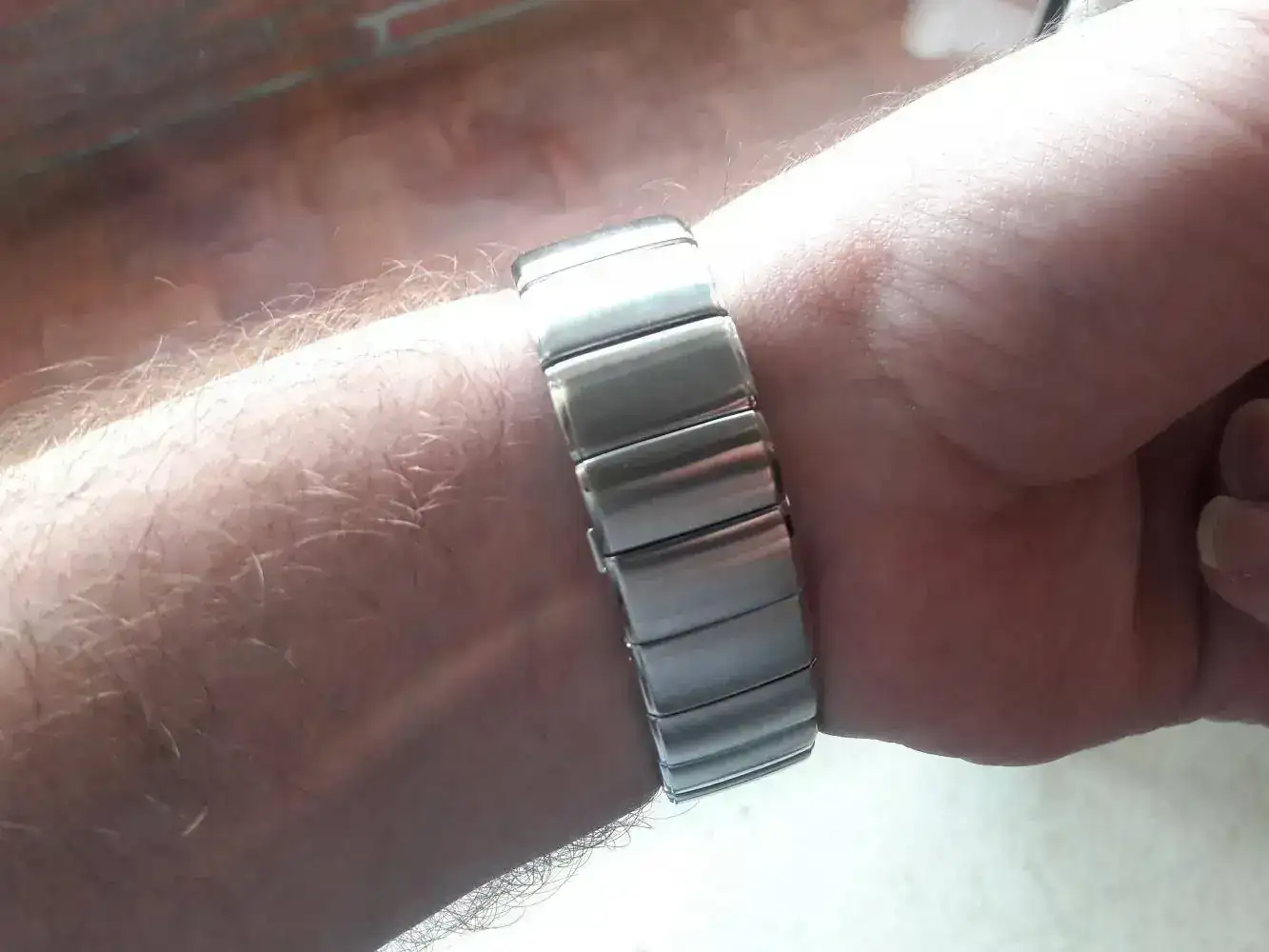Armis peculiar integrado en la caja y con cierre de mariposa oculto.