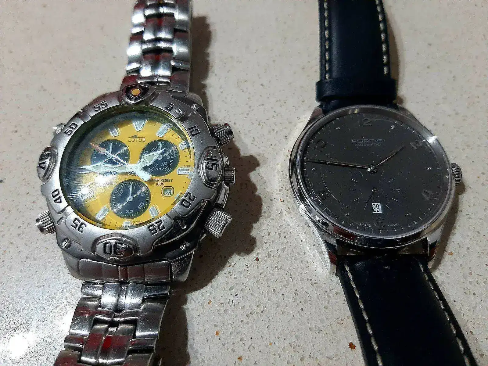 aquí uno de mis Miyota 3S10, en éste caso un Lotus 9699 fotografiado al lado de un Fortis Terrestis Hedonist que no es pequeño precisamente.