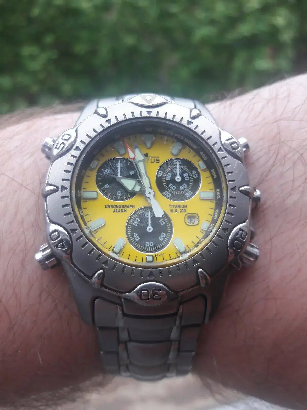 Hola camaradas. Lotus all titanium 9704 con miyota 3s10 y esfera amarilla.