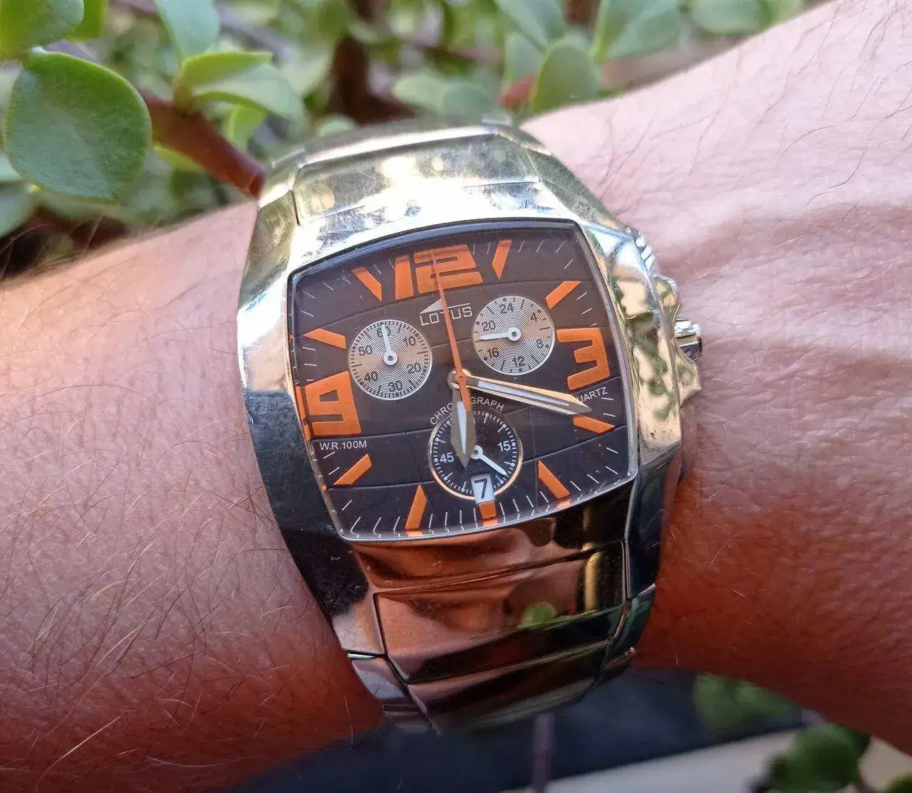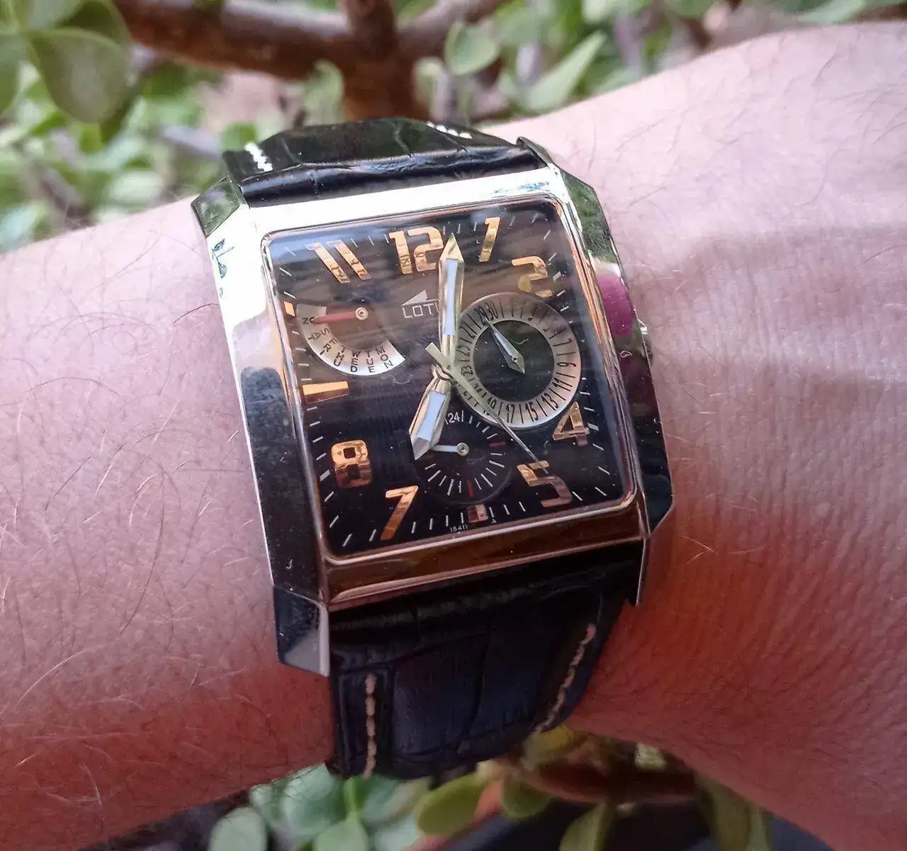 El primero, un 9475 de mi padre. Siempre lo vi por casa antes de perderme en esta afición y hace un año escaso descubrí el movimiento que montaba, así que fui volando a ponerle pila. Una auténtica gozada ponerlo en hora y usar las funciones… (por cierto, agradecería enormemente si alguien me confirma el ancho entre asas, no lo tengo conmigo ahora mismo y le estoy buscando una correa que le haga justicia):