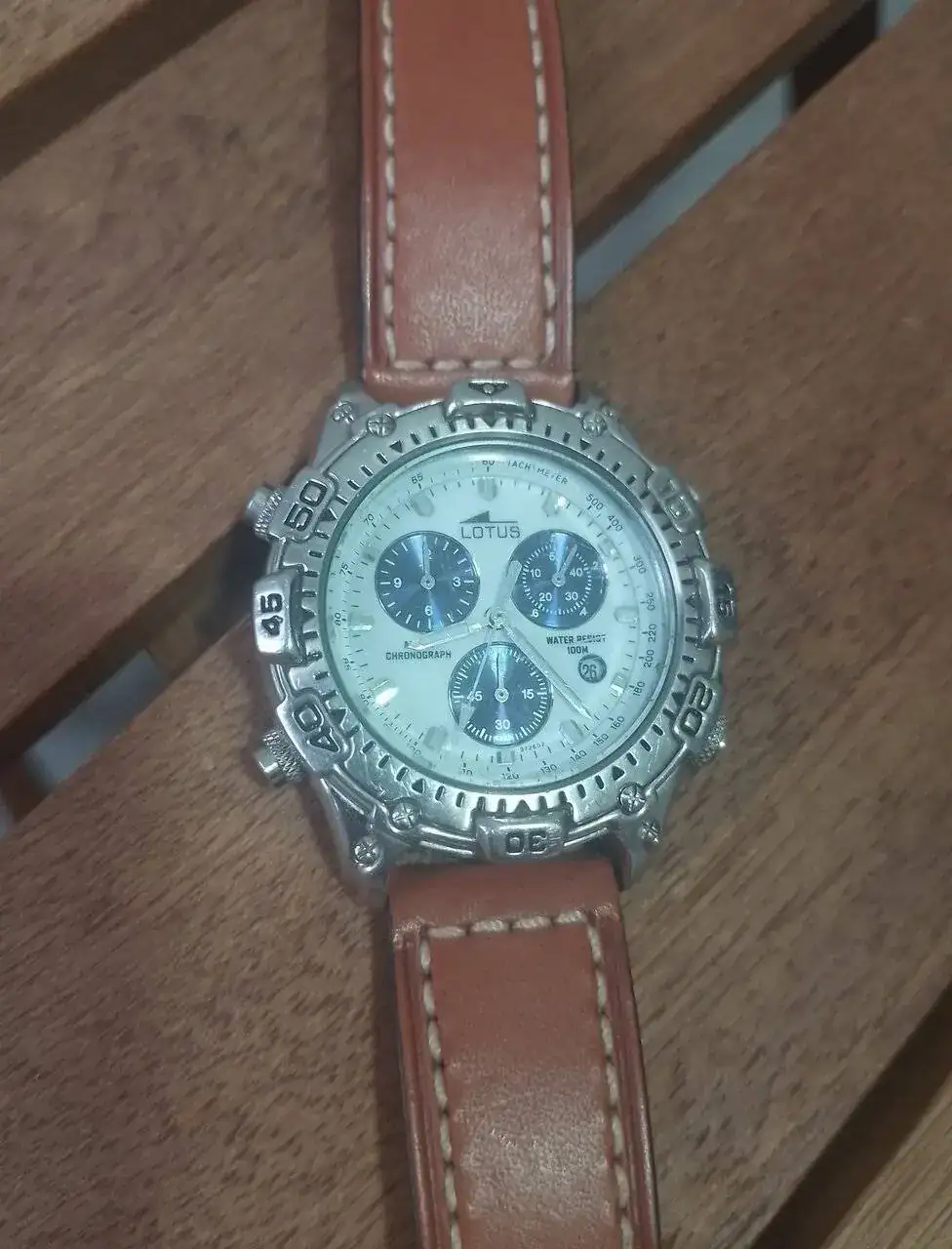 Buenas noches...Os presento de nuevo a un resucitado Lotus 9348, que ha vuelto a la vida gracias a un maestro relojero de los que ya no quedan. Puse una foto de cuando lo compré hará un par de meses, era un reloj que buscaba desde hacía tiempo porque fue mi primer reloj serio y comprado con mi primera nómina y que perdí en una mudanza hace ya unos años. Desde entonces, lo buscaba con este dial azul y por fin lo encontré, aunque con el cronógrafo averiado. No pude echarlo a andar y busqué un donante que tuviera esa mítica Miyota 3S10 en perfecto estado, y por 37 euros lo conseguí en Wallapop, un 9348 con dial blanco, que aunque bonito, los diales blancos y yo no nos llevamos muy bien, no suelen gustarme. Además, lo que me interesaba era el movimiento. Jubilado mi relojero de confianza de siempre, me dispuse a buscar un relojero que pudiera reemplazar y revisarlo…y no lo encontré, en varios sitios que acudí en Málaga, ninguno se atrevía siquiera a abrirlo, por temor a que alguna pieza se rompiera en el traslado de maquinarias. Total, tras algún par de horas buscando en internet algún taller que reparara en concreto este tipo de maquinaria, encontré el taller Restaurar el tiempo, en Onil, Alicante., dirigido por el maestro, porque no tiene otro nombre, Manuel Bernabeu. Cuando ví los videos de este hombre en su Facebook, vi que era el indicado, porque, aparte de ser servicio oficial de Tissot y Certina, trabaja en reparaciones de marcas como Omega, Rolex, Seiko, etc…y también los modestos Festina y Lotus, de los cuales tiene abundantes piezas de sustitución y reparación. Cuando vi que reparaba un Lotus Titanium, sabía que no me equivocaba. Cuando hablé con él, me dijo que no había problema, que lo enviara y lo miraría y me diría algo…Pues bien, después del traslado de maquinaria, revisión de pila y juntas y con el hermetismo hecho, el resultado es el que véís abajo, un 9348, MI 9348 en perfecto estado de funcionamiento, con una correa de piel de tiburón muy similar a la que tenía originalmente. Con permiso de los moderadores, pongo aquí el link de su Facebook https://www.facebook.com/RestaurarElTiempo por si queréis ver los videos de sus reparaciones y para que lo tengáis en cuanto a nivel de reparaciones, ya que aparte de un enorme profesional, por lo que lo he tratado, es mejor aún como persona. Además, con ese apellido, que me recuerda esas 14 Champions, como no iba a serlo…jajajja…Lo dicho, gracias a Manuel y su maestría, puedo hoy disfrutar de nuevo de mi Lotus y rememorar todo lo que viví con él Gracias por leer hasta aquí y perdonad el tocho.