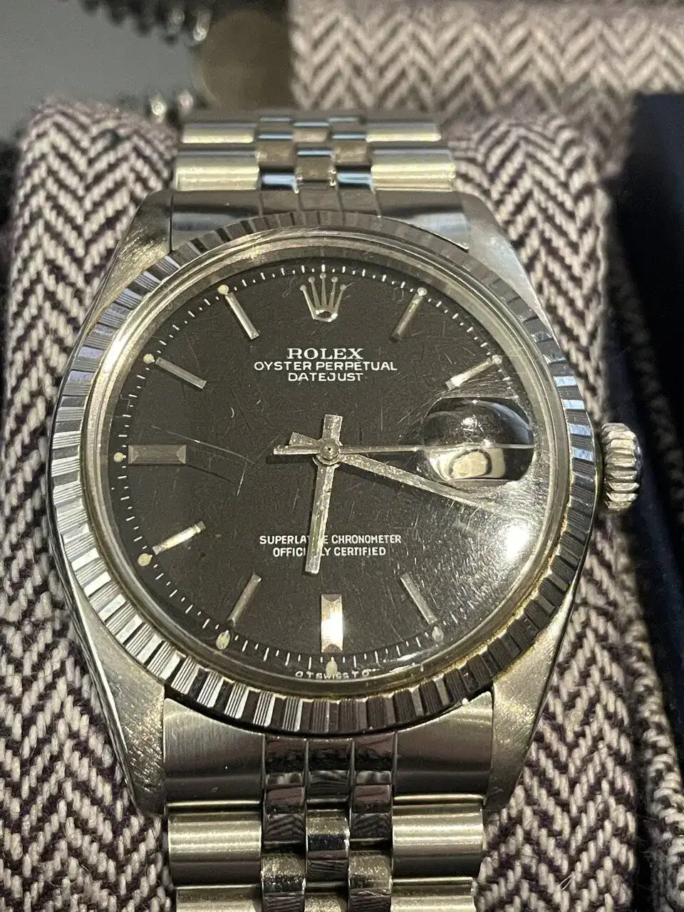 Tengo este Datejust de los años 70 (creo que ref. 1601, esfera sygma) y NUNCA ha sido revisado. Funciona bien pero a veces me planteo llevarlo a revisión. Fue un regalo por lo que no tengo papeles ni nada y quizá sería buena idea tener una tarjetita con sus datos oficiales, ¿no? No está en mi mente venderlo pero si darle una vida bonita y que quién lo herede no tenga las mismas dudas que tengo yo.