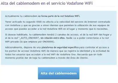 Actualmente tu cablemodem forma parte del servicio de Vodafone WiFi.