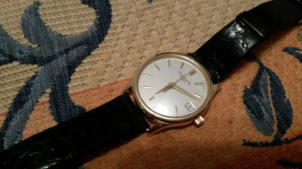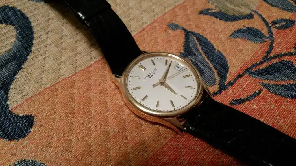 Está claro que, para los relojes que nos gustan hoy en día, es un poco pequeño (36 mm), pero hay que reconocer que este modelo en particular, dentro de los Calatrava de entonces, tiene un encanto especial, por el color arena de su esfera, la limpieza de líneas y su cristal abombado. Las agujas le dan un toque especial con su forma y su claridad de lectura.