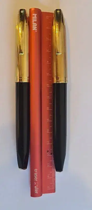 Una vez en casa, y con las plumas en el escritorio, las examiné más exhaustivamente (deeeeees-pa-ci-to) y lo que encontré mando mis expectativas a tomar Fanta.