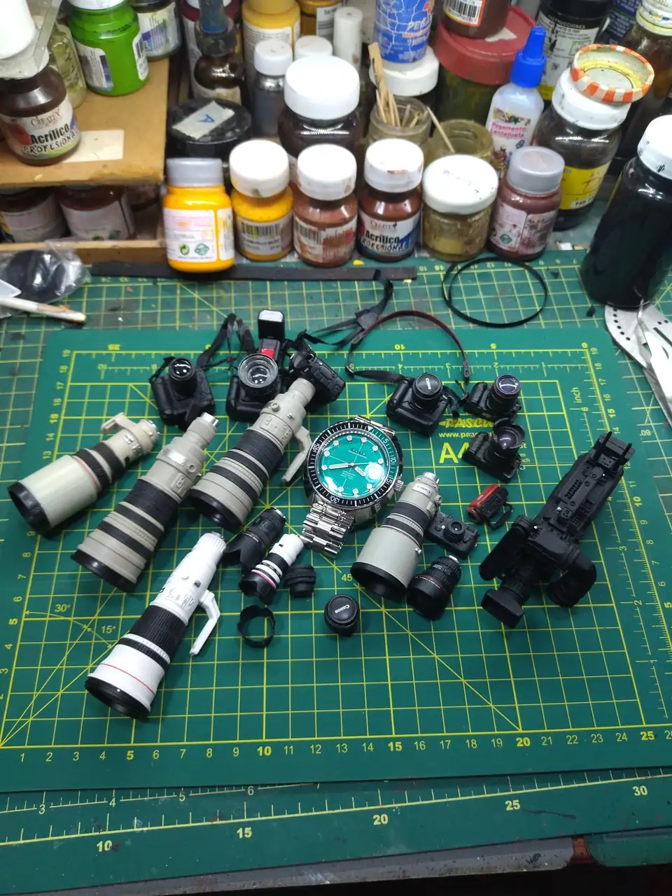 Impresionante!!! 👏🏻👏🏻👌Años de coleccionar figuras militares terminaron por cansarme, si bien conservo un monton de armas y accesorios ahora mi interes esta mas centrado en el tema civil, aqui una foto de mi coleccion de camaras a escala 1/6 con un mi "devil diver".