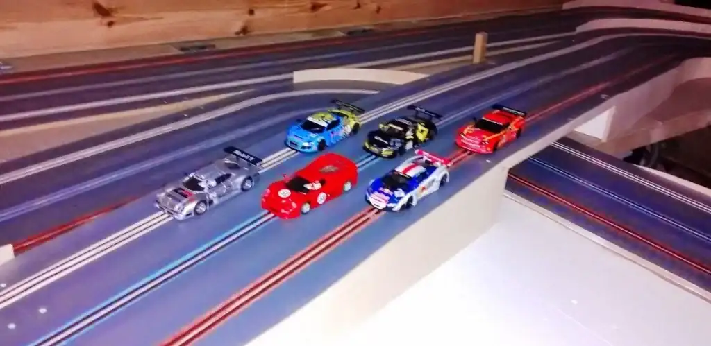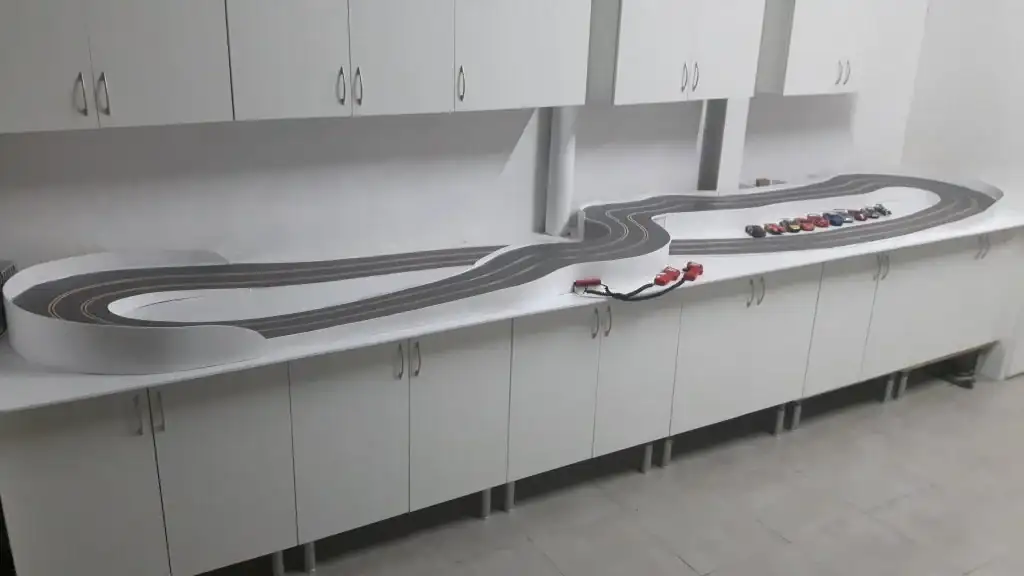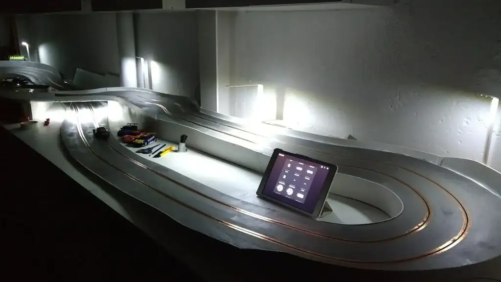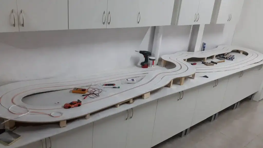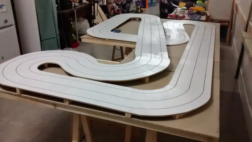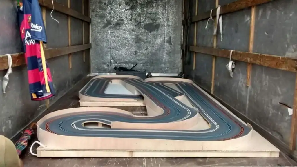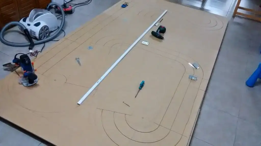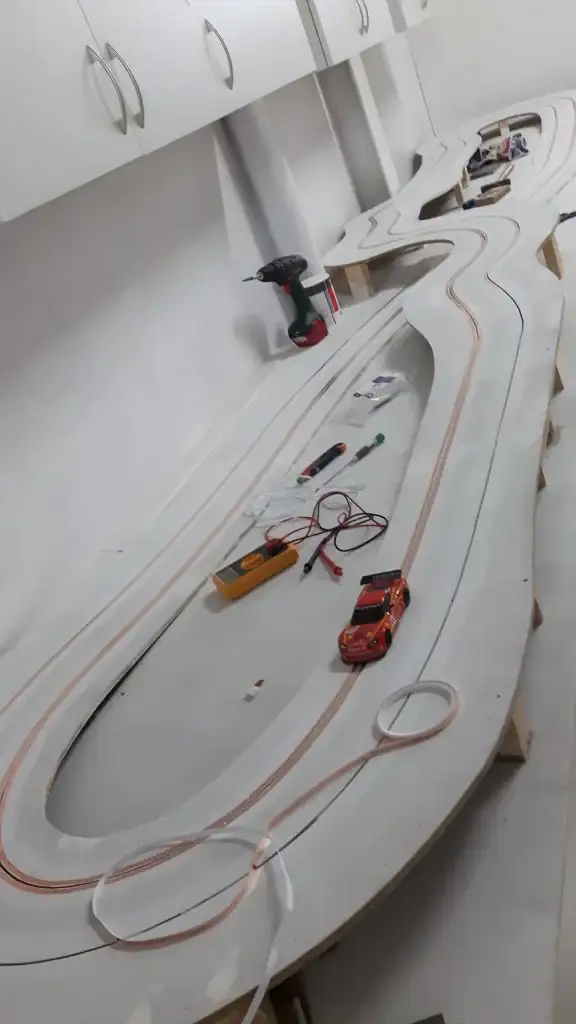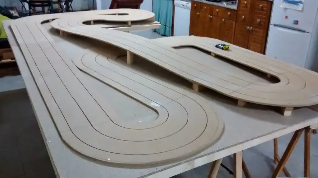 Hace unos años me dio por aprovechar que tenía espacio en el parking de casa, una fresadora y unos cuantos tableros de DM y fabriqué un Scalextric para mis hijos (y para mí, claro jajaja).