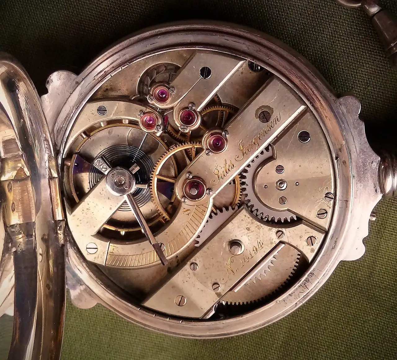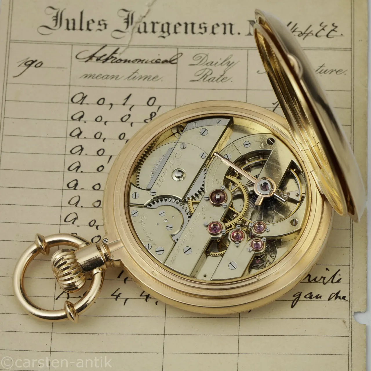 Los Jürgensen fueron una extirpe relojera suizo-danesa que empezó su andadura en 1773 y que a finales del s. XIX alcanzó todo su esplendor. Esta familia dio nombres tan importantes a la historia de la relojería como Urban Jürgensen o Jules Frederik Jürgensen. Sus relojes eran sinónimo de calidad y evidentemente acapararon un mercado de clientes muy pudientes. En 1900 sus productos eran más caros que los de firmas como PP y Vacheron. No me voy a extender demasiado en la historia de los Jürgensen y quien desee hacerlo puede dirigirse a un artículo que escribí hace unos años.