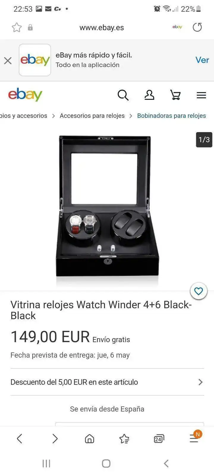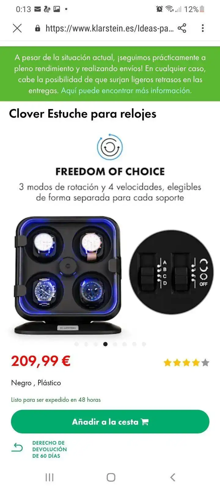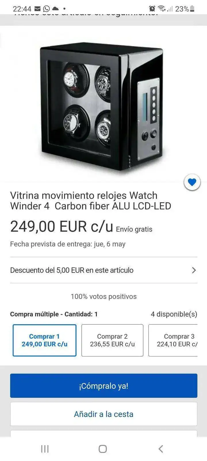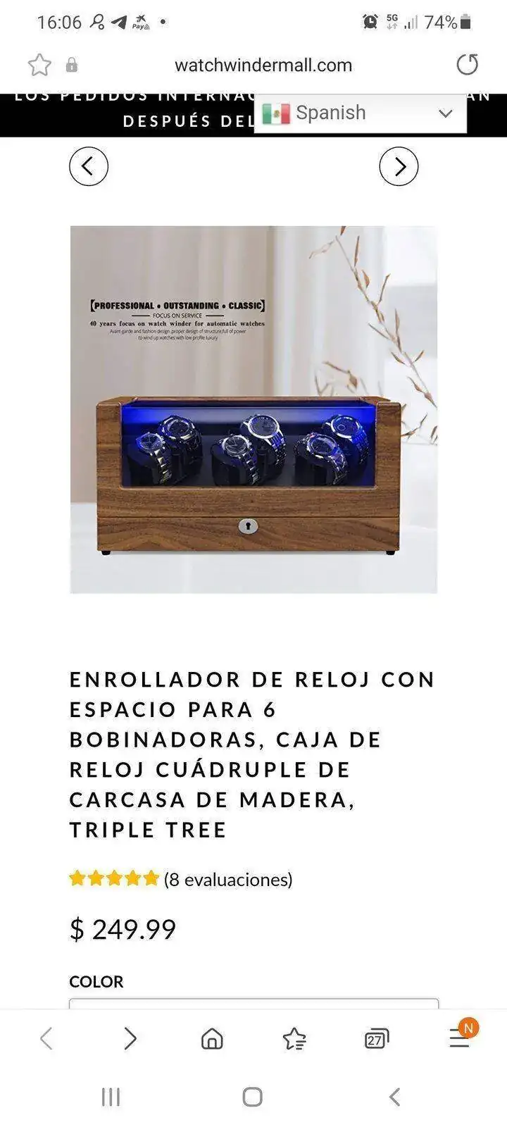 Buenas noches. Siguiendo el tema. Y por aportar ideas. Después de estar una semana viendo cientos de cajas online he visto muchas que podría comprar. Os dejo todas las que podrían ser la caja ideal. Cuando tenga la caja en mi poder os la enseñaré para valorar si he acertado o no. Lo que quería poner sobre la mesa es que buscar y que valorar de una caja. Pues depende de cada cual. Yo buscaba. Cabida para 4 a 6 relojes máximo. Bonito expositor, es decir de madera o imitación mejor que plástico. Con distintas velocidades y sentidos de giro. Tener en cuenta cuantos motores tiene, hay cajas de tres giros pero con dos.motores. Las hay de cuatro carcasas giratorias con motores independientes....esto es para mi lo ideal, para dejar uno funcionando y los otros no...Menos importante pero que para algúno que este pensando comprar lo sea. Medidas contenidas. Y forma de exponer. Piensa en ello. Es decir no es lo.mismo que se vea de frente...desde arriba...de ambas maneras. Que tenga cierre con llave. Que tenga luz. Que la luz se pueda quitar y poner. Y lo más importante que te guste, no que le guste a otro forero o amigo...o sea la más vendidas.Y la garantía del fabricante claro. Todo ello con el mejor precio.