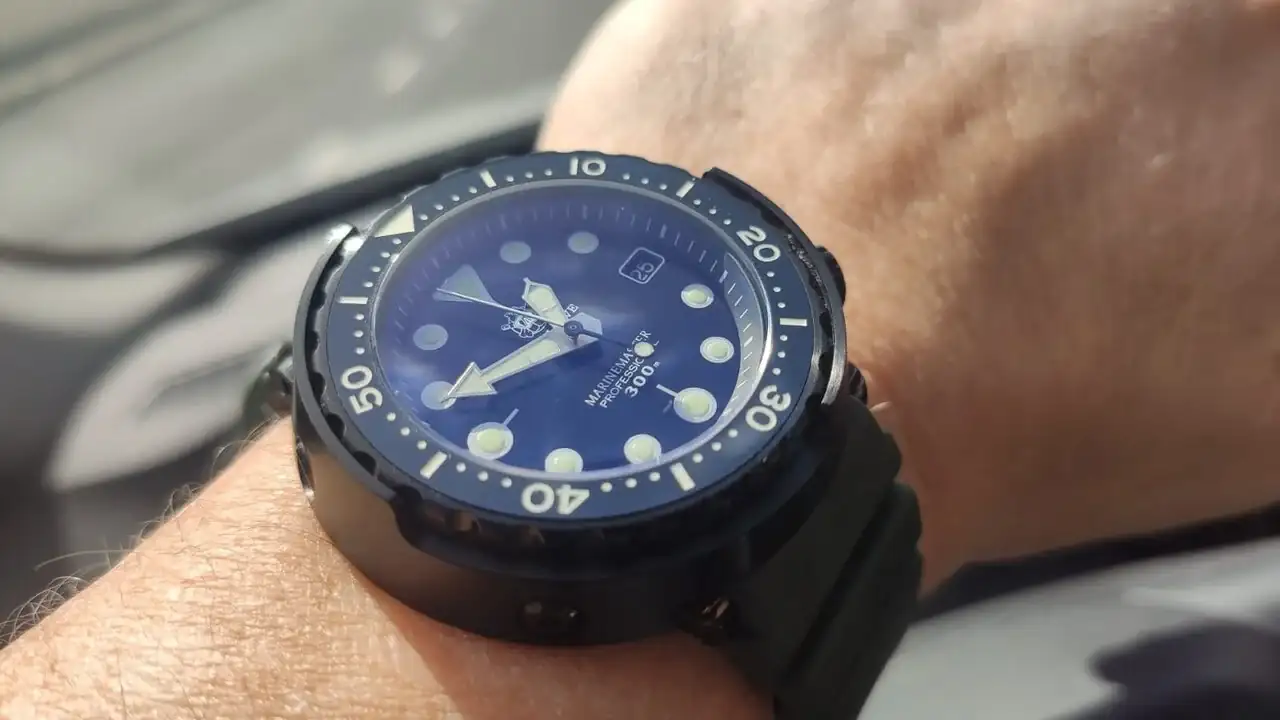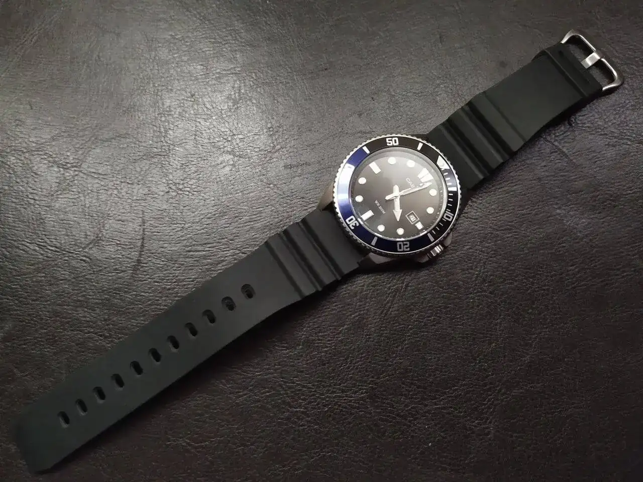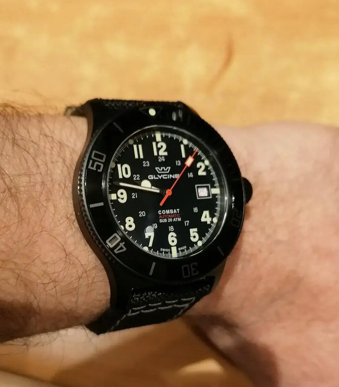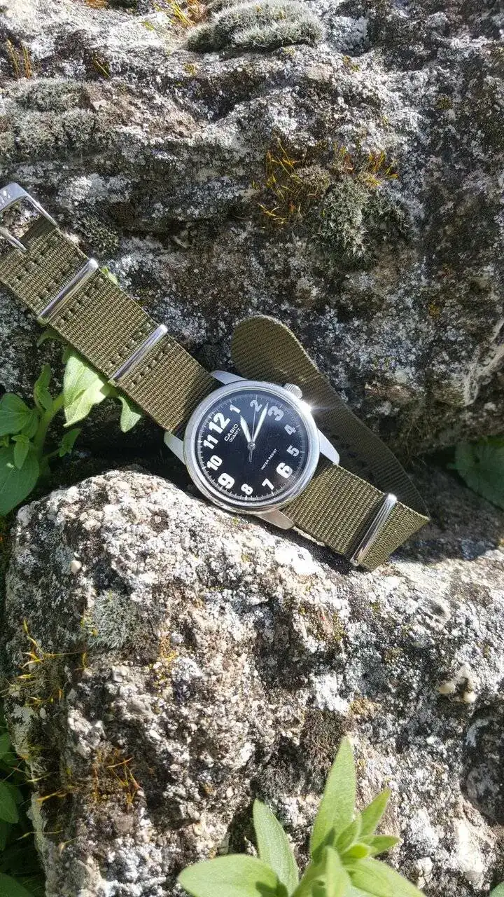 Pues este es el mío. Un Mido. La verdad es que se me hacía muy negro con esta correa, y le puse una rola oscura de nylon que le queda perfecta con es segundero.