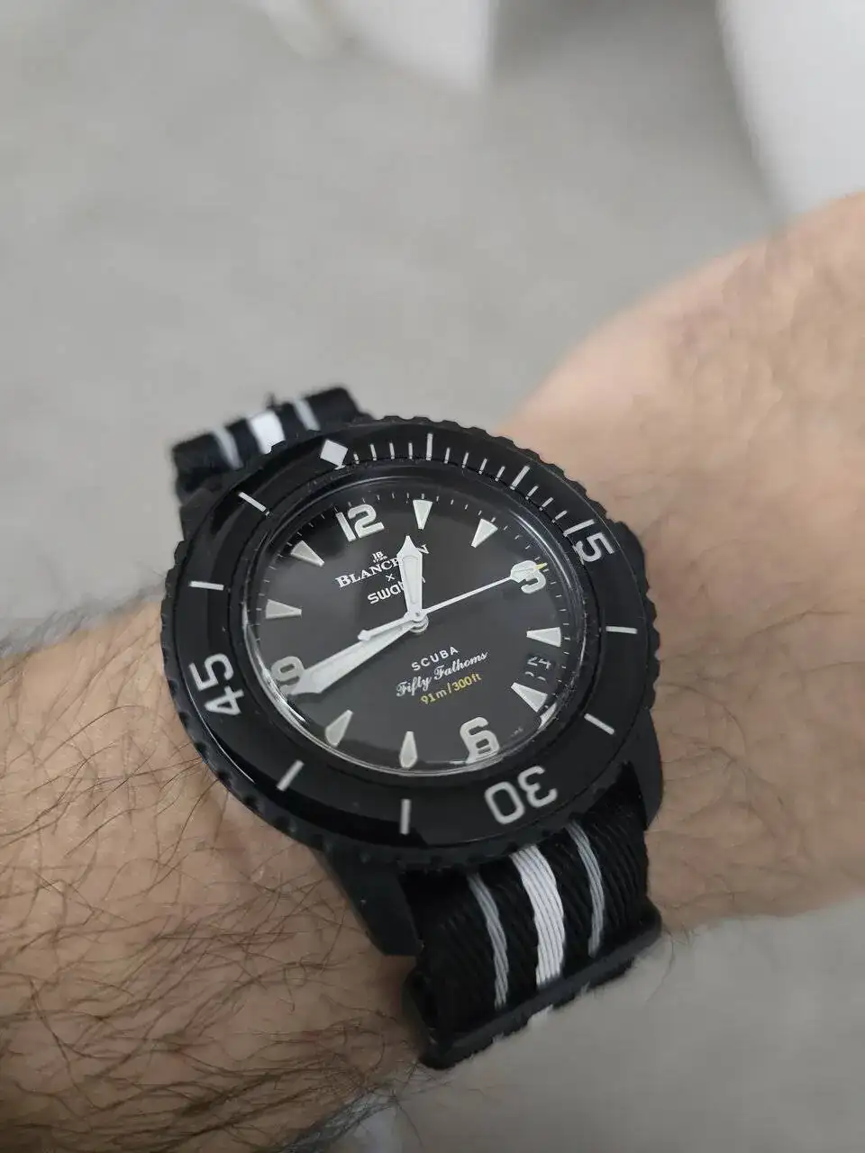 No podía faltar en este hilo, que pasada. Mi versión favorita sin duda.Mi homenaje Swatch al mitico Blancpain FF