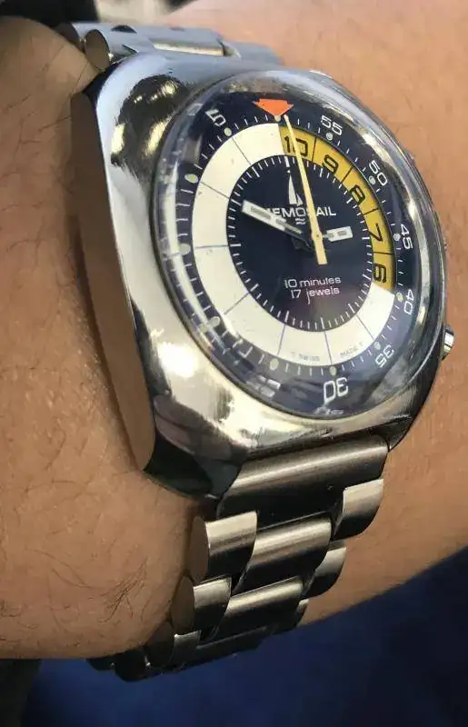 Hay madre mia, igualito a ese fue el primer regalo de reloj automatico de mi padre, hace ya 42 años, lo perdi, y fue el que mas recuerdo. Esa milanesa!!!!!!!!!!!!, solo que el mio era fondo verdoso. ORIENT FOCUS. Me has emocionado con esa foto